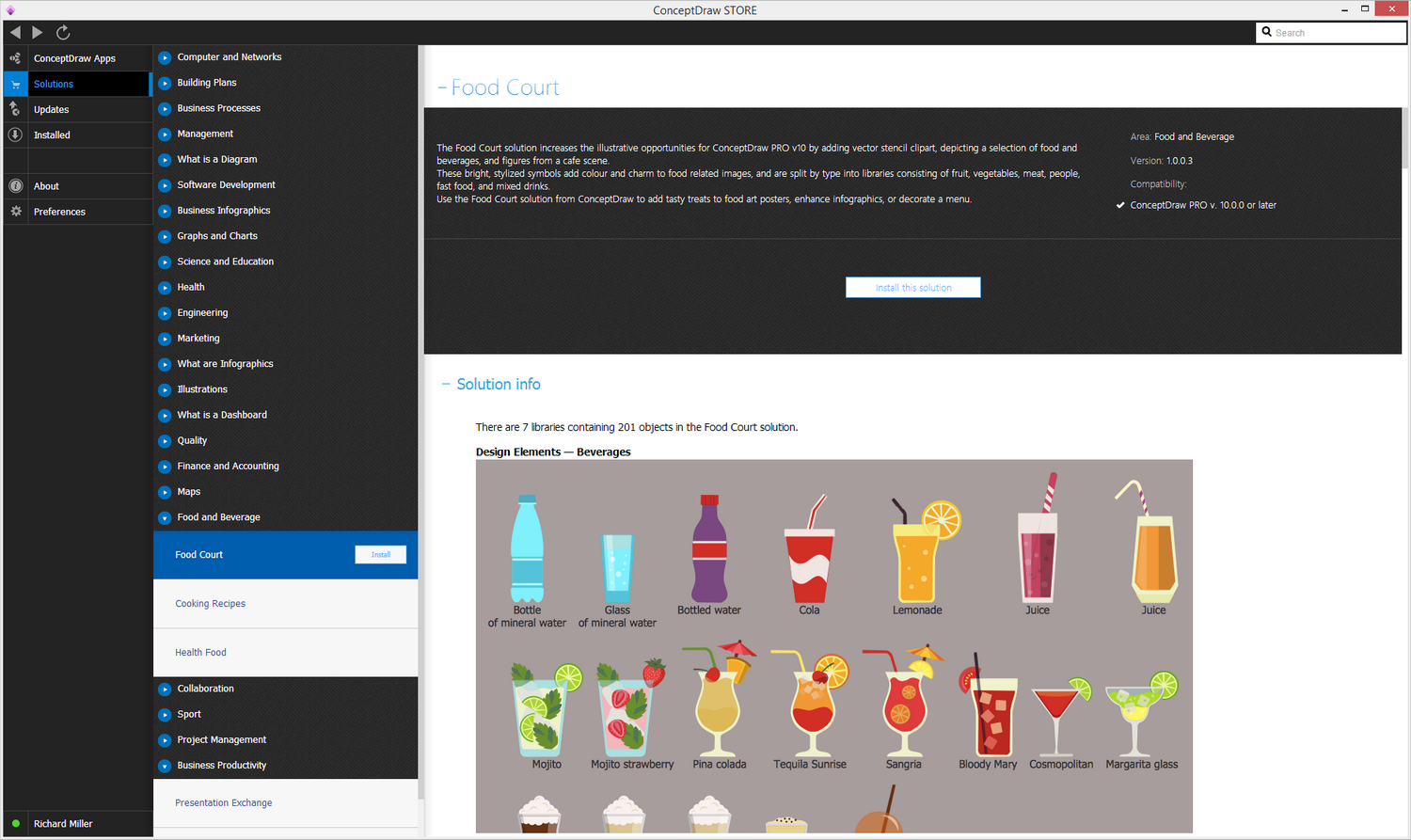 After ConceptDraw STORE and ConceptDraw DIAGRAM are downloaded and installed, you can install the Food Court solution from the ConceptDraw STORE.