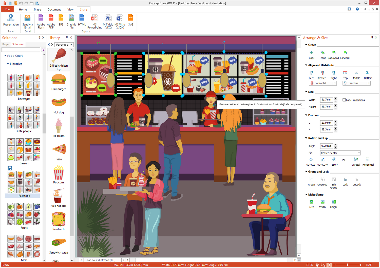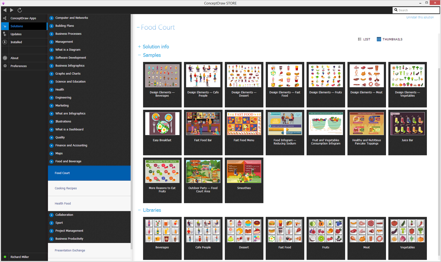 Teachers, cooks, restaurant and cafe owners, marketers and many other food-related specialists might find the Food Court solution truly useful for creating the food-related drawings in order to illustrate the food courts as well as the food itself.
