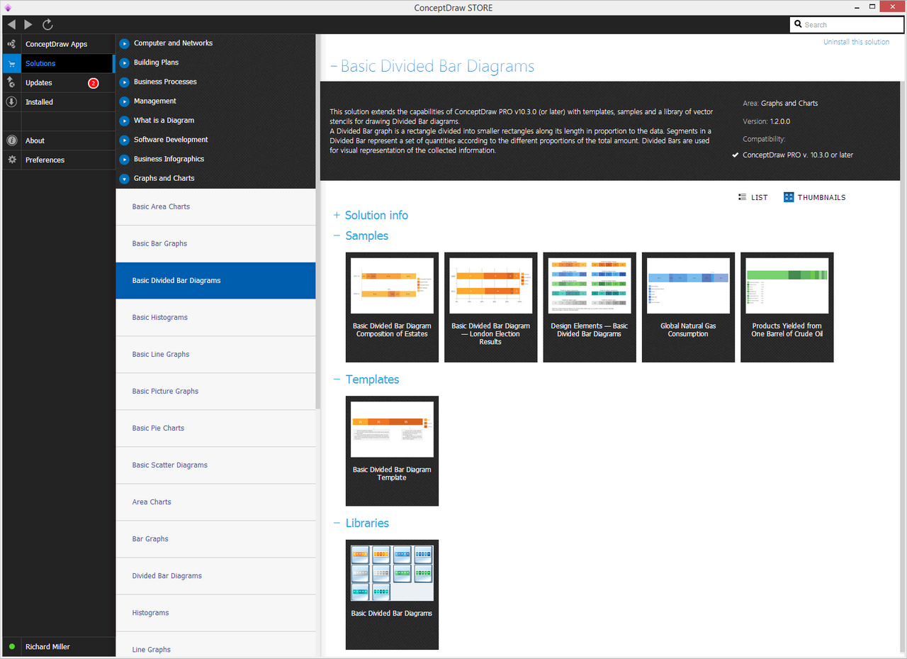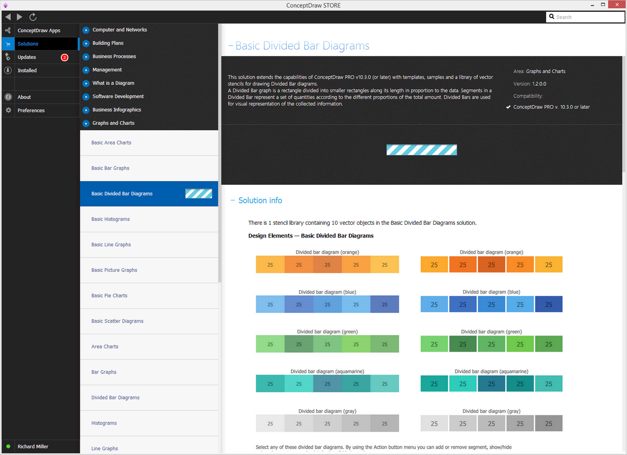 After ConceptDraw STORE and ConceptDraw DIAGRAM are downloaded and installed, you can install the Basic Divided Bar Diagrams solution from the ConceptDraw STORE.
