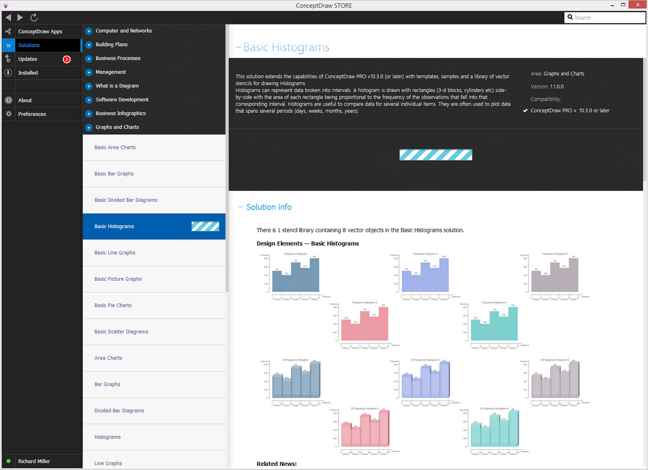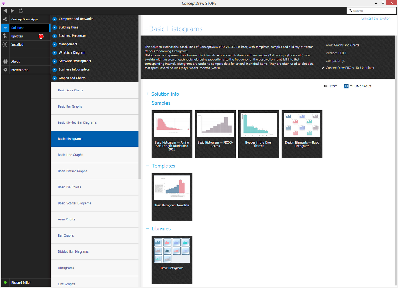 After ConceptDraw STORE and ConceptDraw DIAGRAM are downloaded and installed, you can install the Basic Histograms solution from the ConceptDraw STORE.