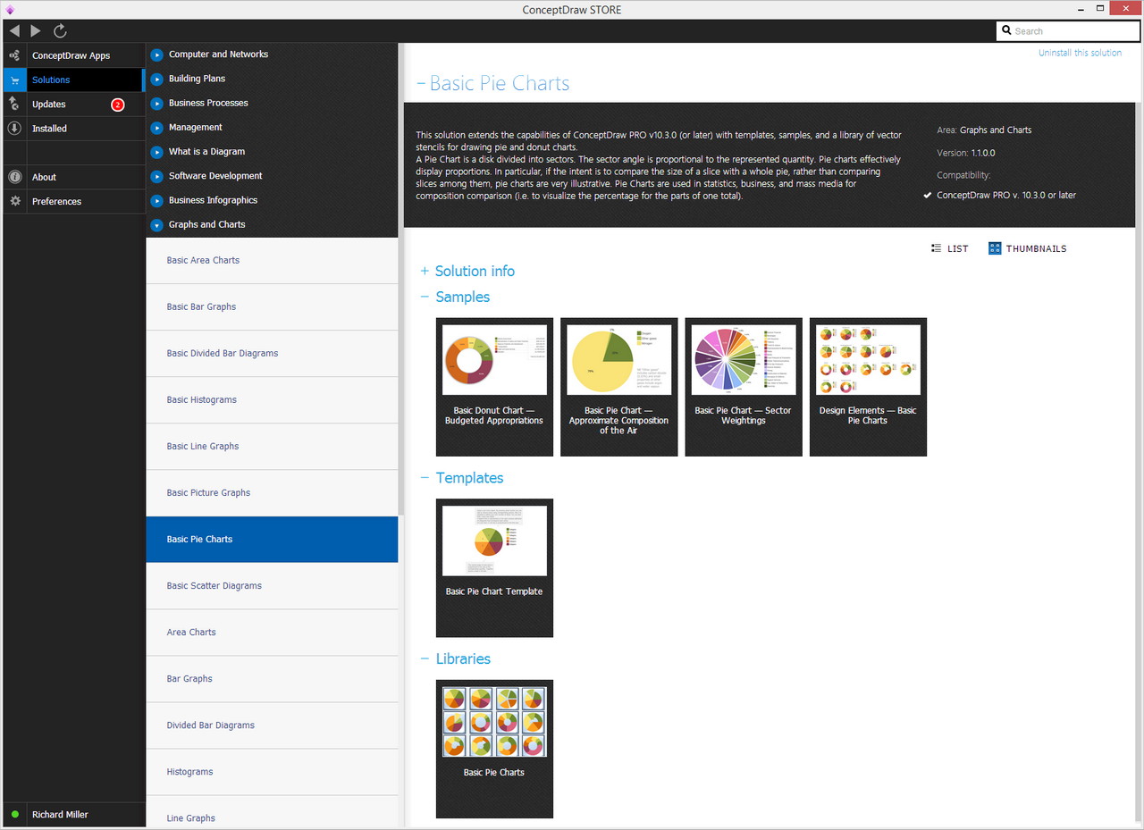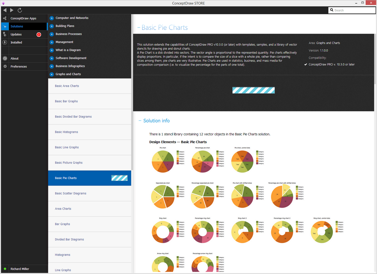After ConceptDraw STORE and ConceptDraw DIAGRAM are downloaded and installed, you can install the Basic Pie Charts solution from the ConceptDraw STORE.