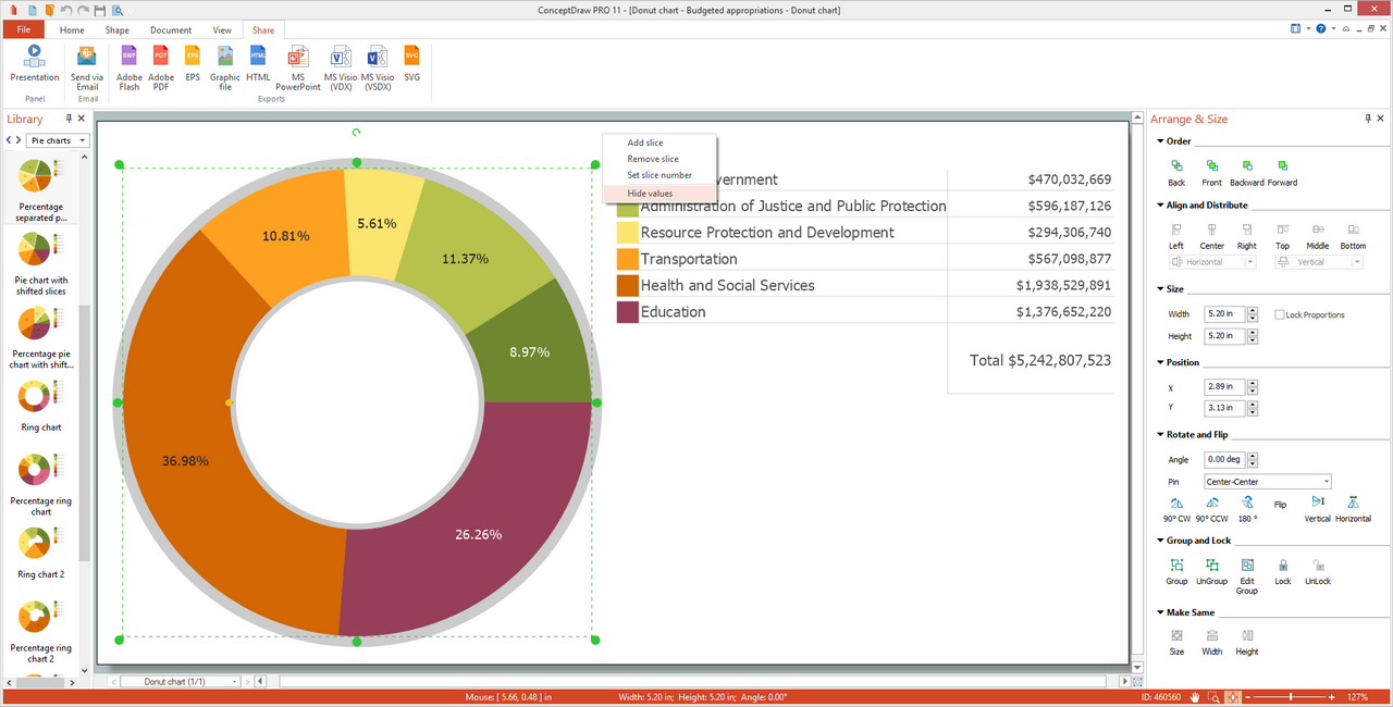 This solution extends the capabilities of ConceptDraw DIAGRAM with templates, samples, and a library of vector stencils for drawing pie and donut charts.