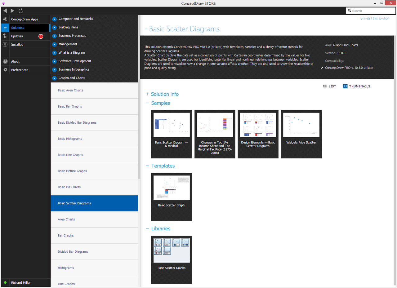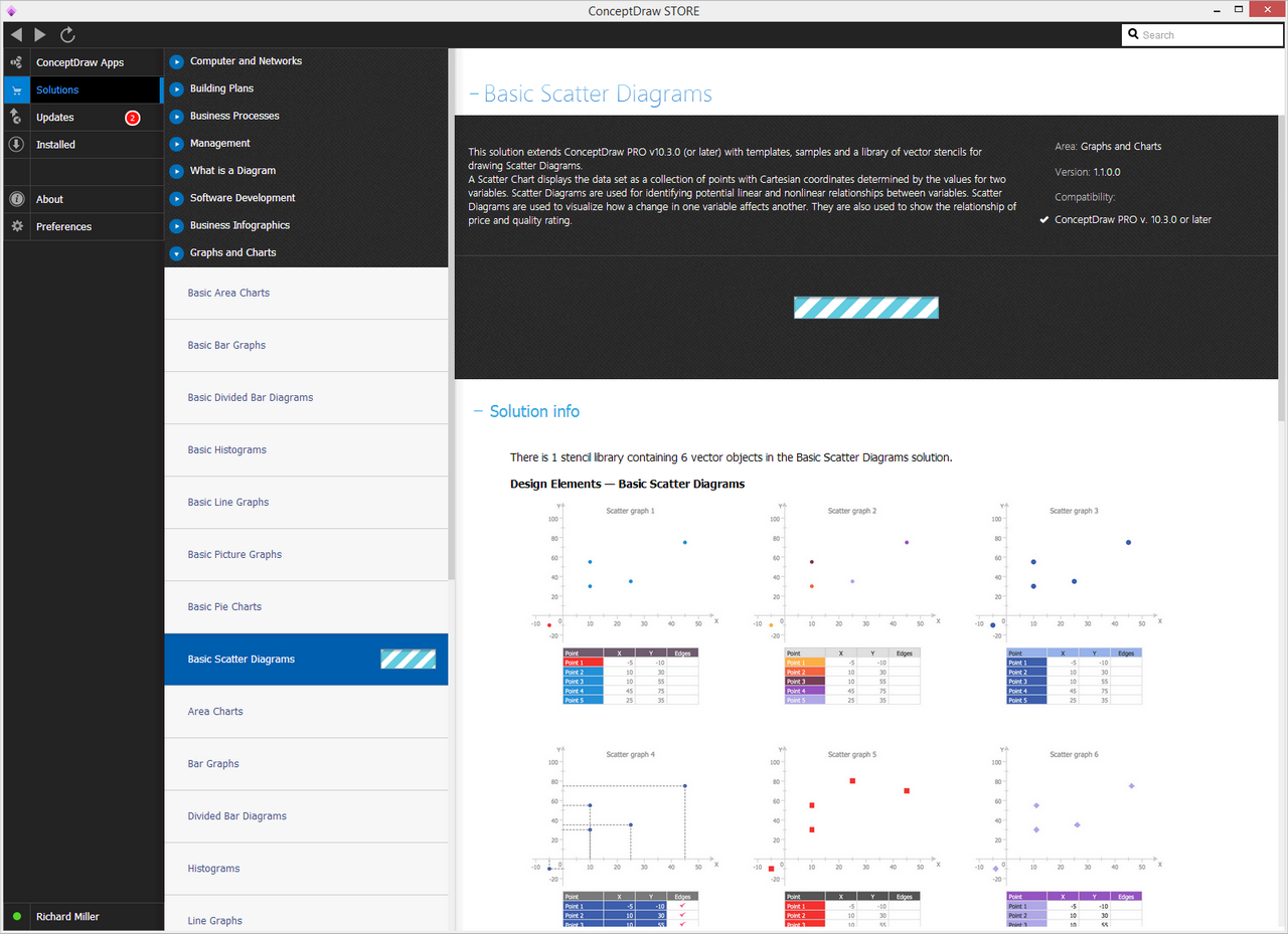 After ConceptDraw STORE and ConceptDraw DIAGRAM are downloaded and installed, you can install the Basic Scatter Diagrams solution from the ConceptDraw STORE.