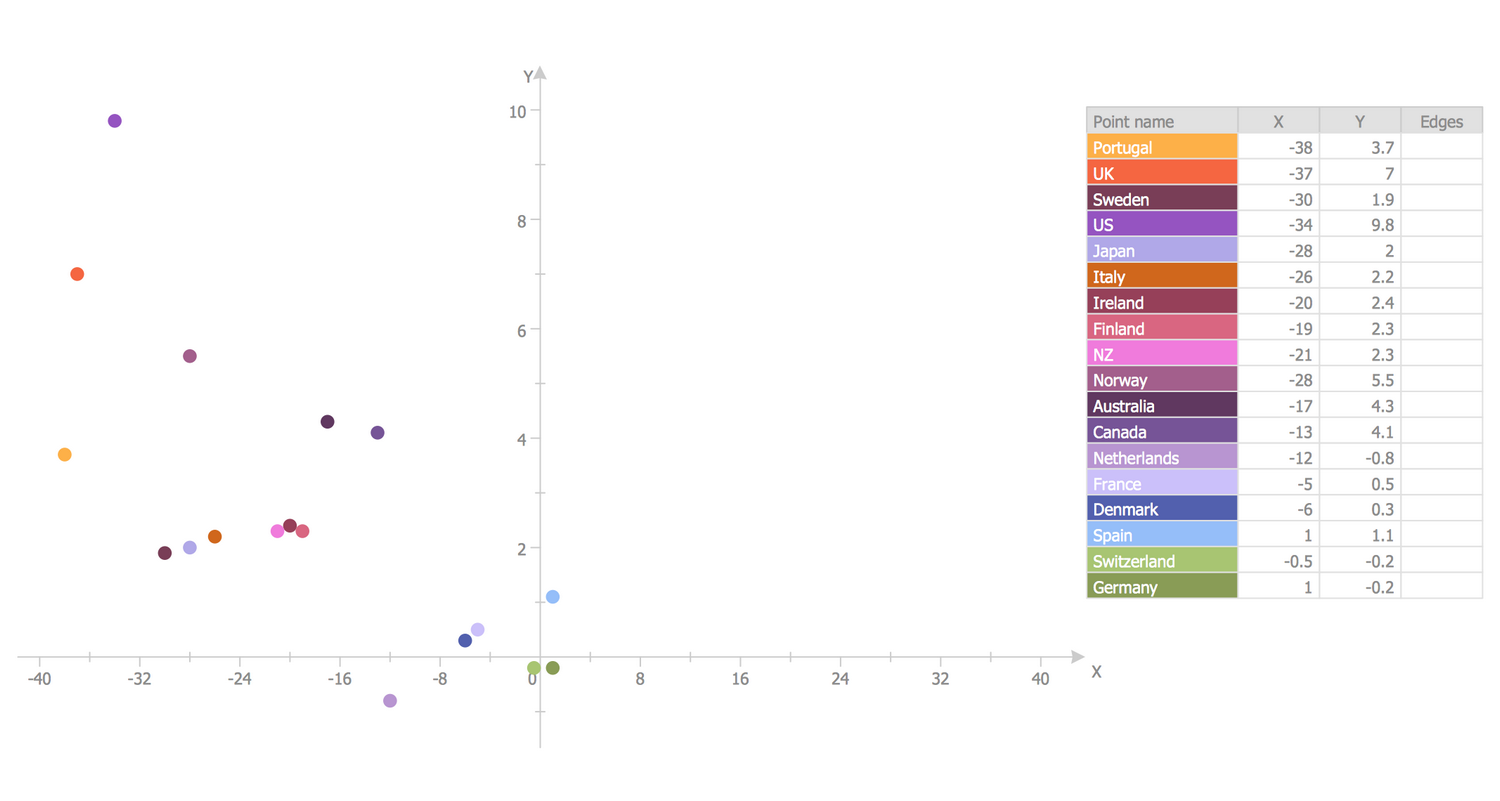 There are a few samples that you see on this page which were created in the ConceptDraw DIAGRAM application by using the Basic Scatter Diagrams solution. Some of the solution's capabilities as well as the professional results which you can achieve are all demonstrated here on this page.