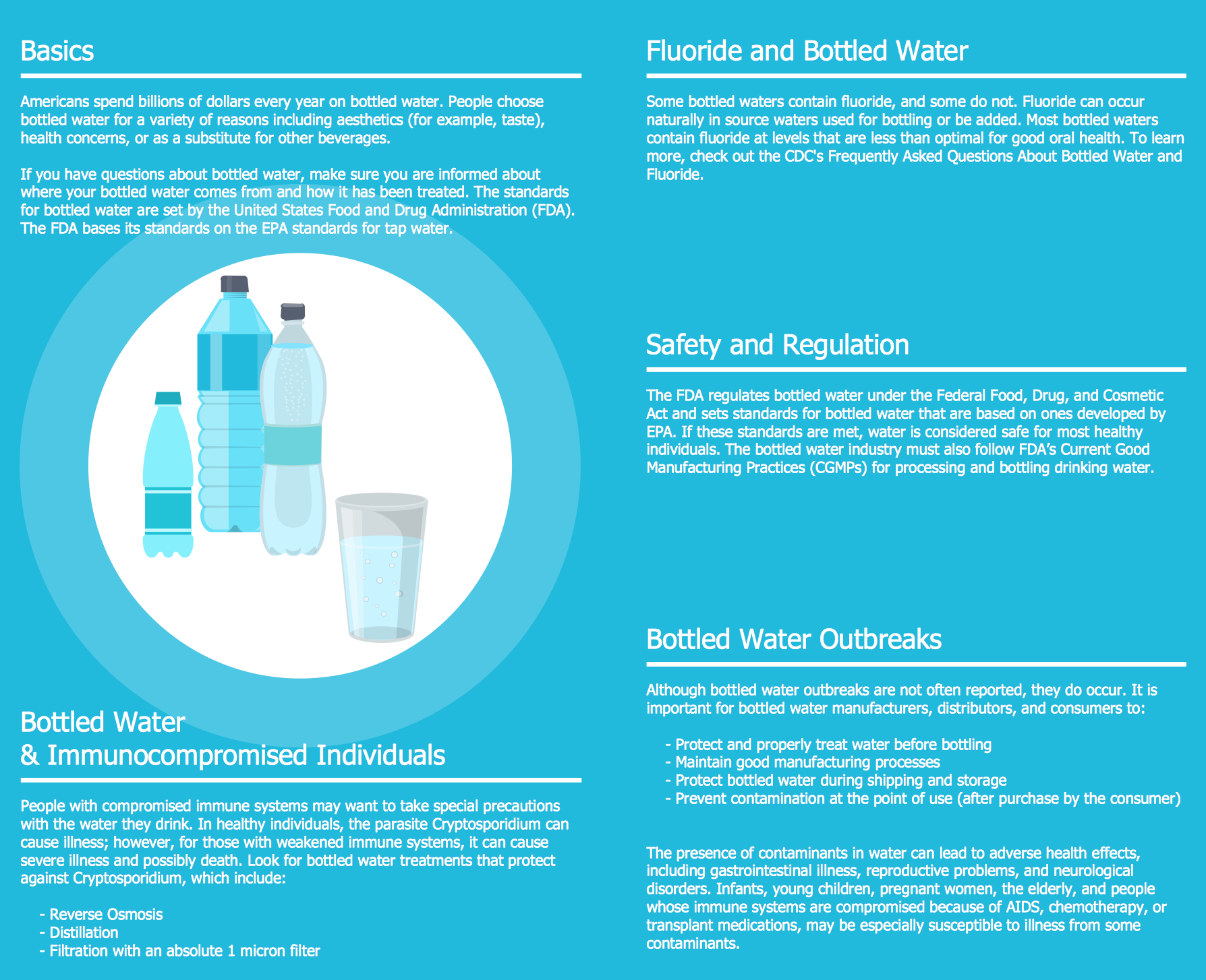 This sample contains detailed information about exactly what goes into bottled water - it's often more than just H2O! Using the professional looking and colorful clipart offered by the Health Food solution image libraries breaks up text heavy documents and makes them easier to digest.