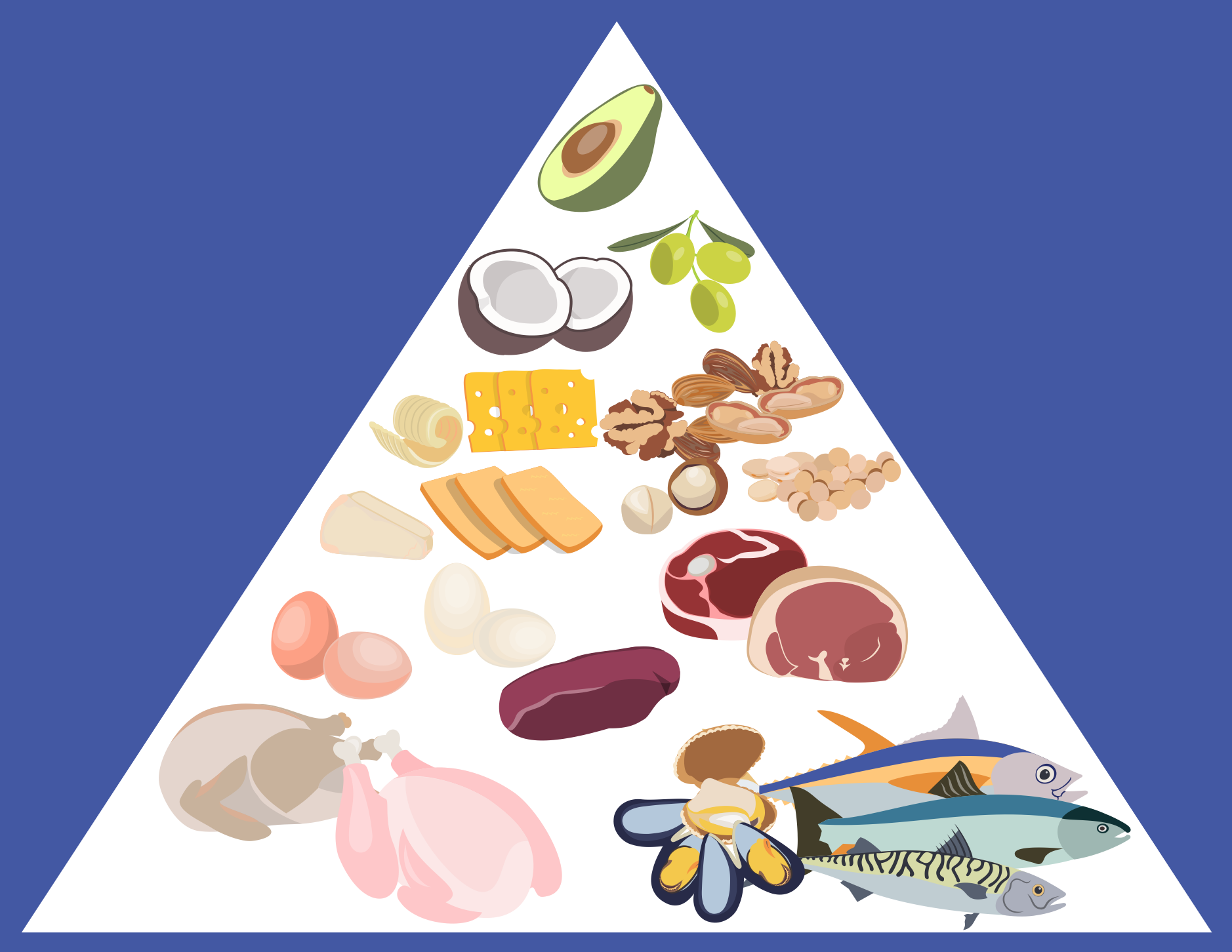 One of the more effective ways of presenting information on healthy eating and food nutrition is through visual mediums, such as charts, diagrams or infographics. One of the most famous examples is the 'food pyramid' infographic. In this diagram, pictures of various types of food are contained within a levelled pyramid, with the widest base level showing the starchy foods that should make up the majority of a diet, tapering to treats and sweets at the top that should be eaten very sparingly.