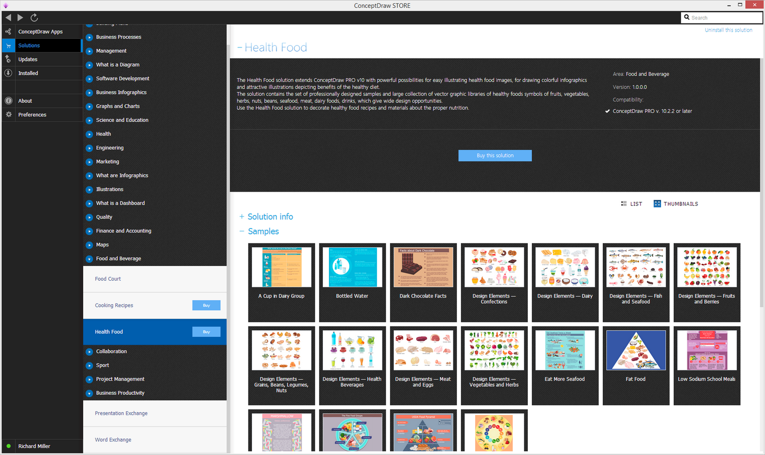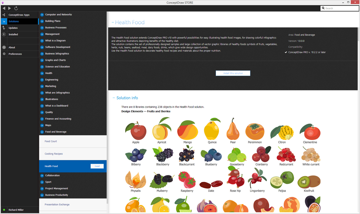 After ConceptDraw DIAGRAM is installed, the Health Food solution can be purchased either from the Food and Beverage area of ConceptDraw STORE itself or from our online store. Thus, you will be able to use the Health Food solution straight after.