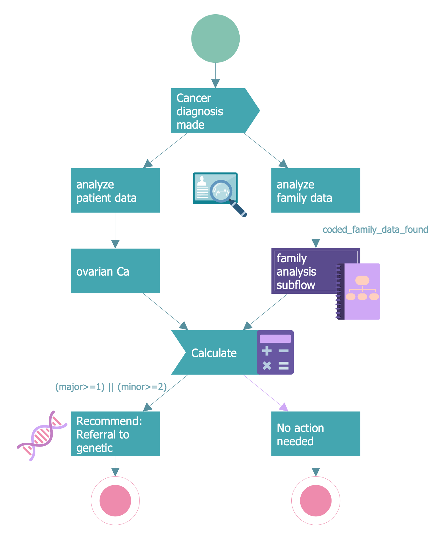 There are a few samples that you see on this page which were created in the ConceptDraw DIAGRAM application by using the Health Informatics solution. Some of the solution's capabilities as well as the professional results which you can achieve are all demonstrated here on this page.