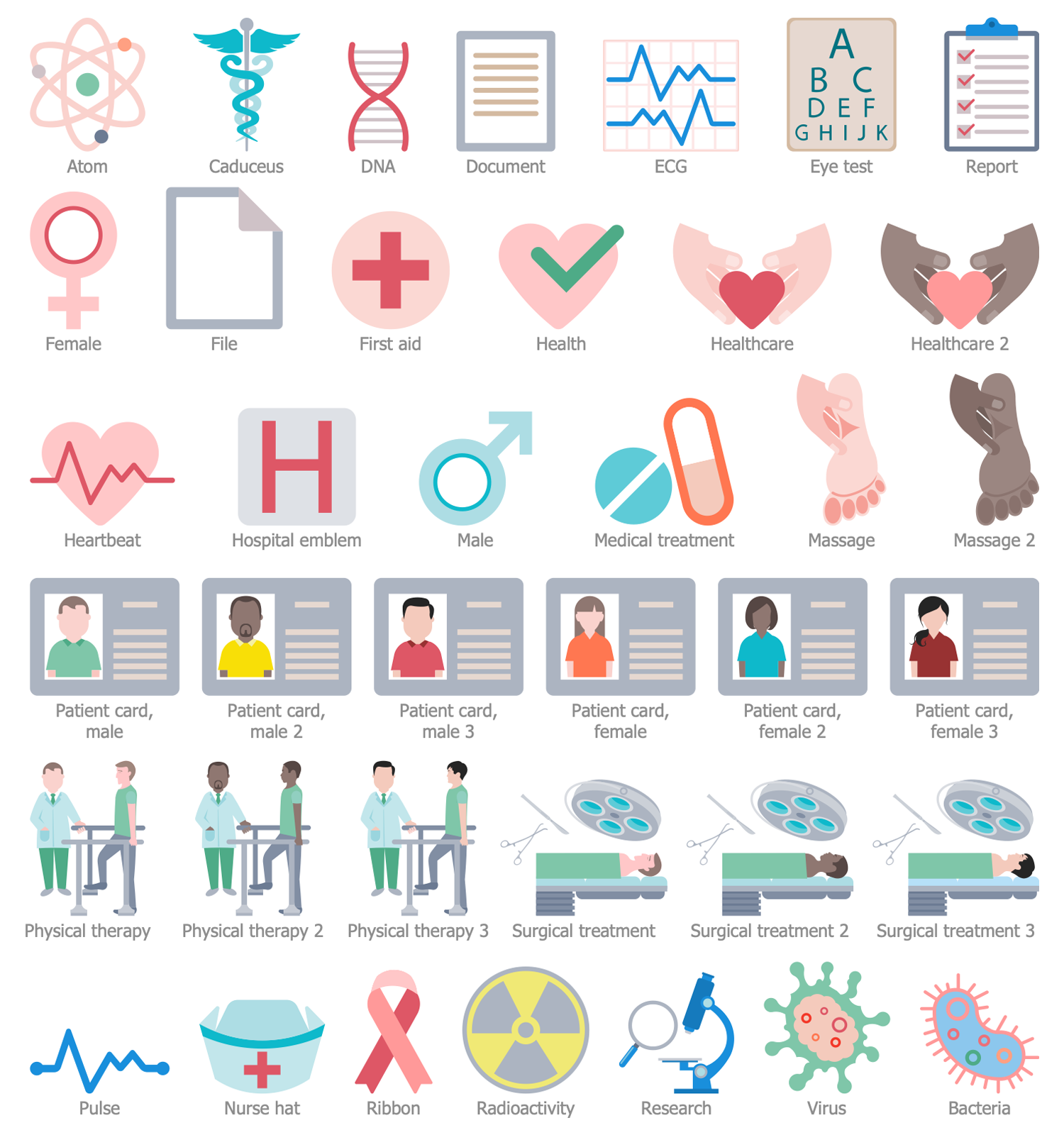 Healthcare Management Workflow Diagrams solution contains 10 samples and 11 libraries containing 433 vector graphics and icons, allowing you to create professional-looking documents.