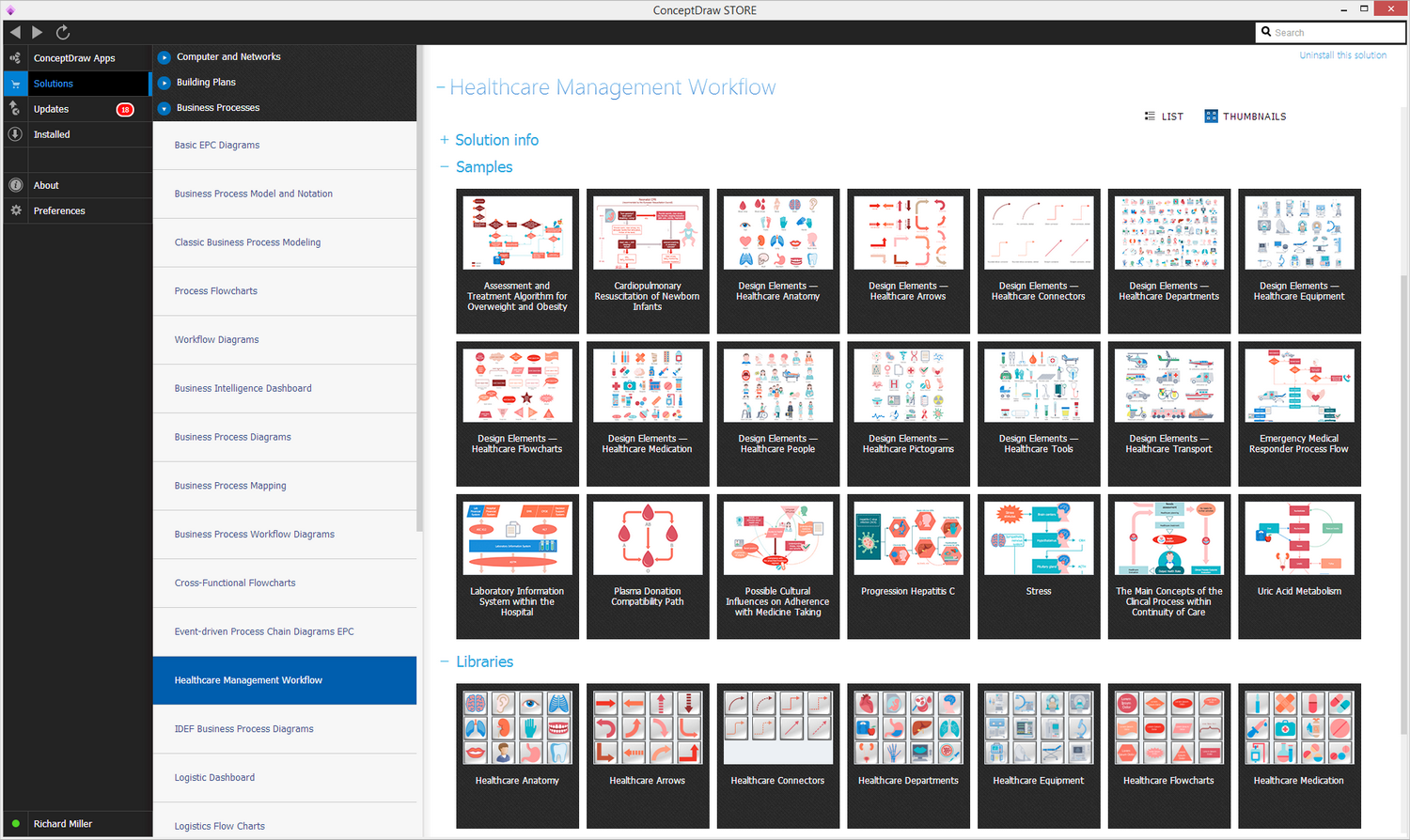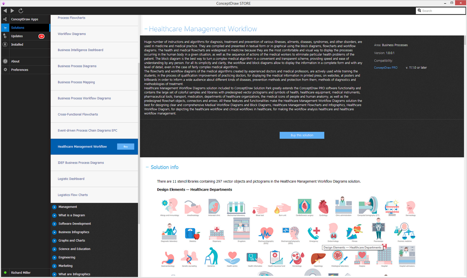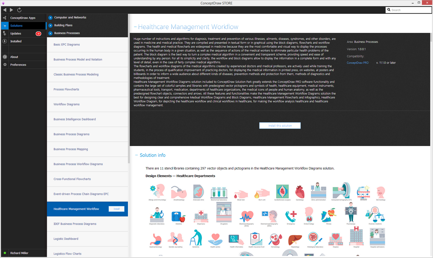 After ConceptDraw DIAGRAM is installed, the Healthcare Management Workflow Diagrams solution can be purchased either from the Business Processes area of ConceptDraw STORE itself or from our online store. Thus, you will be able to use the Healthcare Management Workflow Diagrams solution straight after.