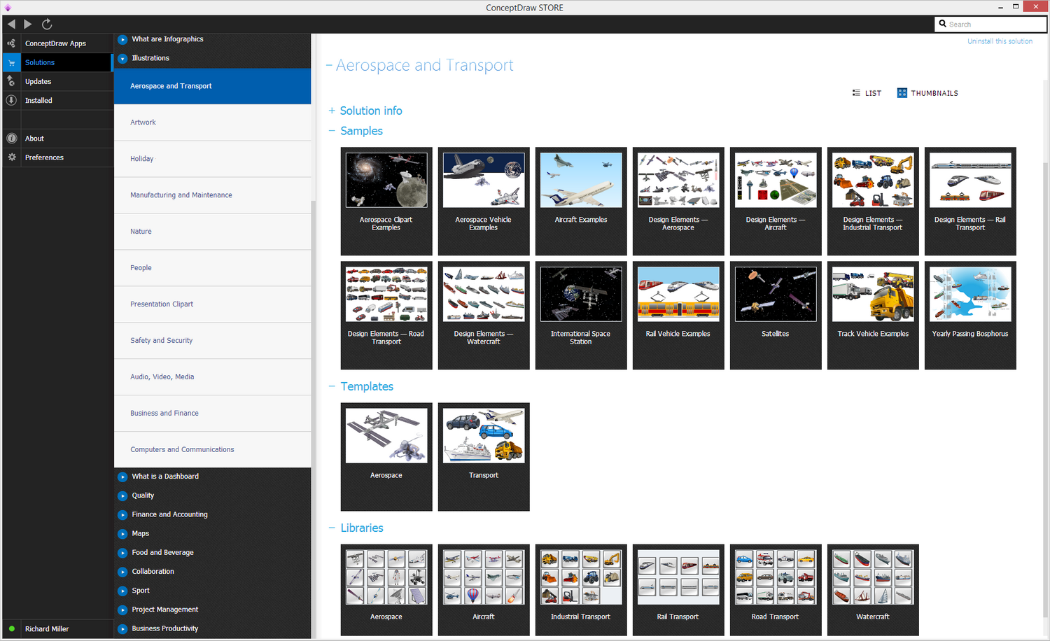 After ConceptDraw STORE and ConceptDraw DIAGRAM are downloaded and installed, you can install the Aerospace and Transport solution from the ConceptDraw STORE.