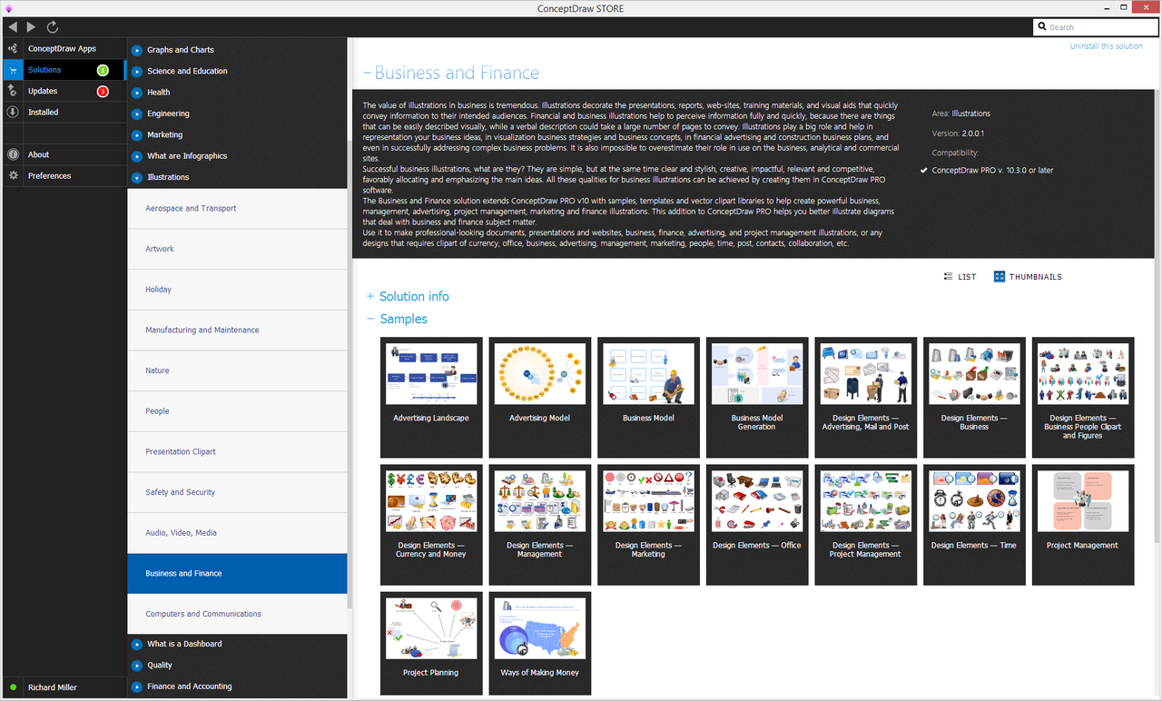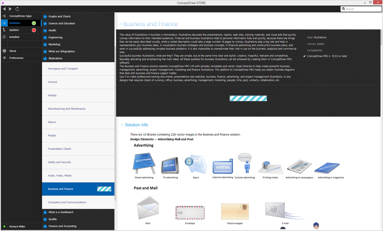 After ConceptDraw STORE and ConceptDraw DIAGRAM are downloaded and installed, you can install the Business and Finance solution from the ConceptDraw STORE.