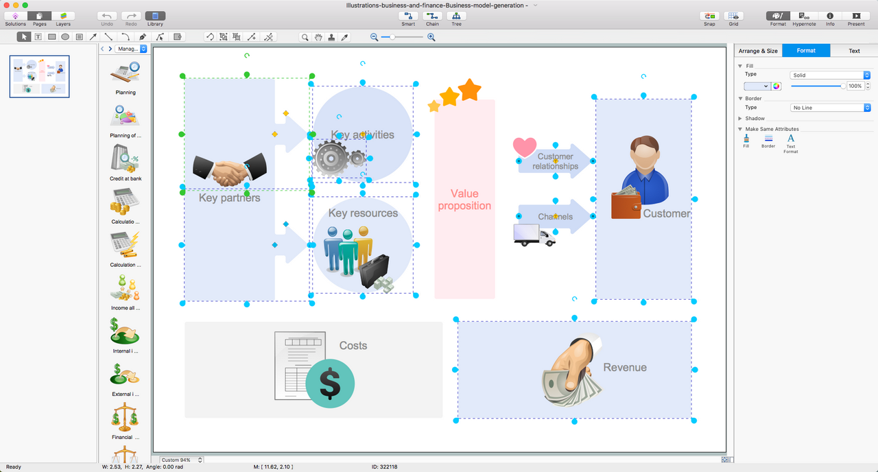 All source documents are vector graphic documents which are always available for modifying, reviewing and/or converting to many different formats, such as MS PowerPoint, PDF file, MS Visio, and many other graphic ones from the ConceptDraw Solution Park or ConceptDraw STORE. The Business and Finance solution is available to all ConceptDraw DIAGRAM users to get installed and used while working in the ConceptDraw DIAGRAM diagramming and drawing software.