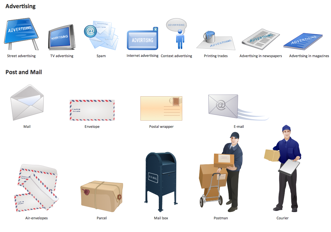 This example was created in ConceptDraw DIAGRAM using the Advertising Library from the Business and Finance Solution. An experienced user spent 25 minutes creating this sample.