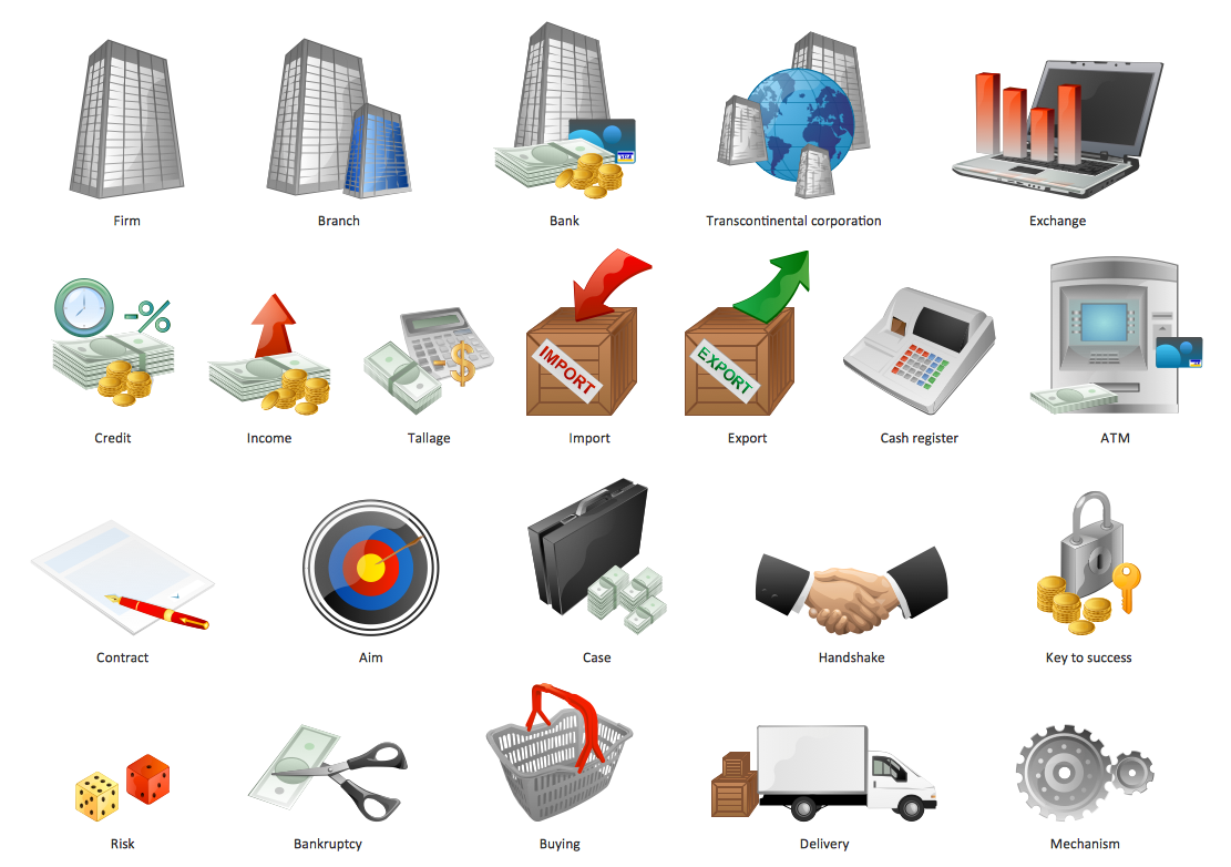 Both ConceptDraw DIAGRAM diagramming and drawing software and the Business and Finance solution can help creating the illustrations you need. The Business and Finance solution can be found in the Illustration area of ConceptDraw STORE application that can be downloaded from this site. Make sure that both ConceptDraw DIAGRAM and ConceptDraw STORE applications are installed on your computer before you get started.