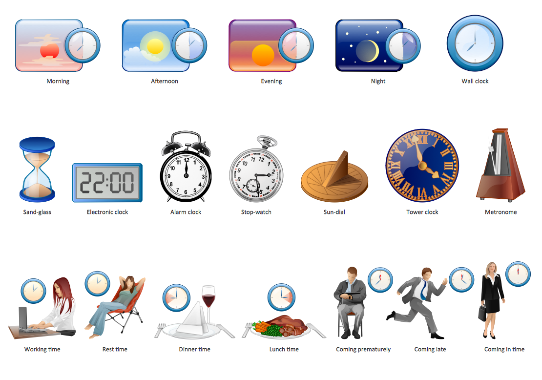 This example was created in ConceptDraw DIAGRAM using the Time and Money Libraries from the Business and Finance Solution. An experienced user spent 15 minutes creating this sample.