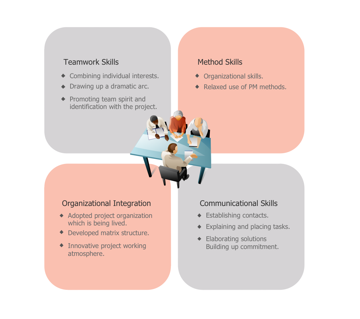This business illustration demonstrates significant components of successful project management. High resolution vector illustrations are perfect for presentation needs. This illustration scales properly for large screens.