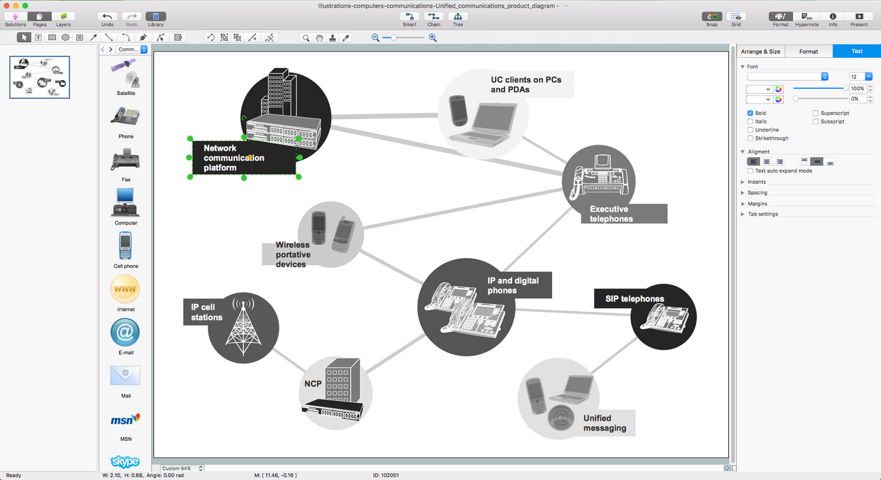 The Internet and communication technologies are the most popular and open with limitless possibilities. Computer network diagrams, communication diagrams, diagrams reflecting components of computer systems and architectures, and the interactions between them are used everywhere and their structure requires the availability of powerful software tools to represent how the interactions between all of the components ties together.