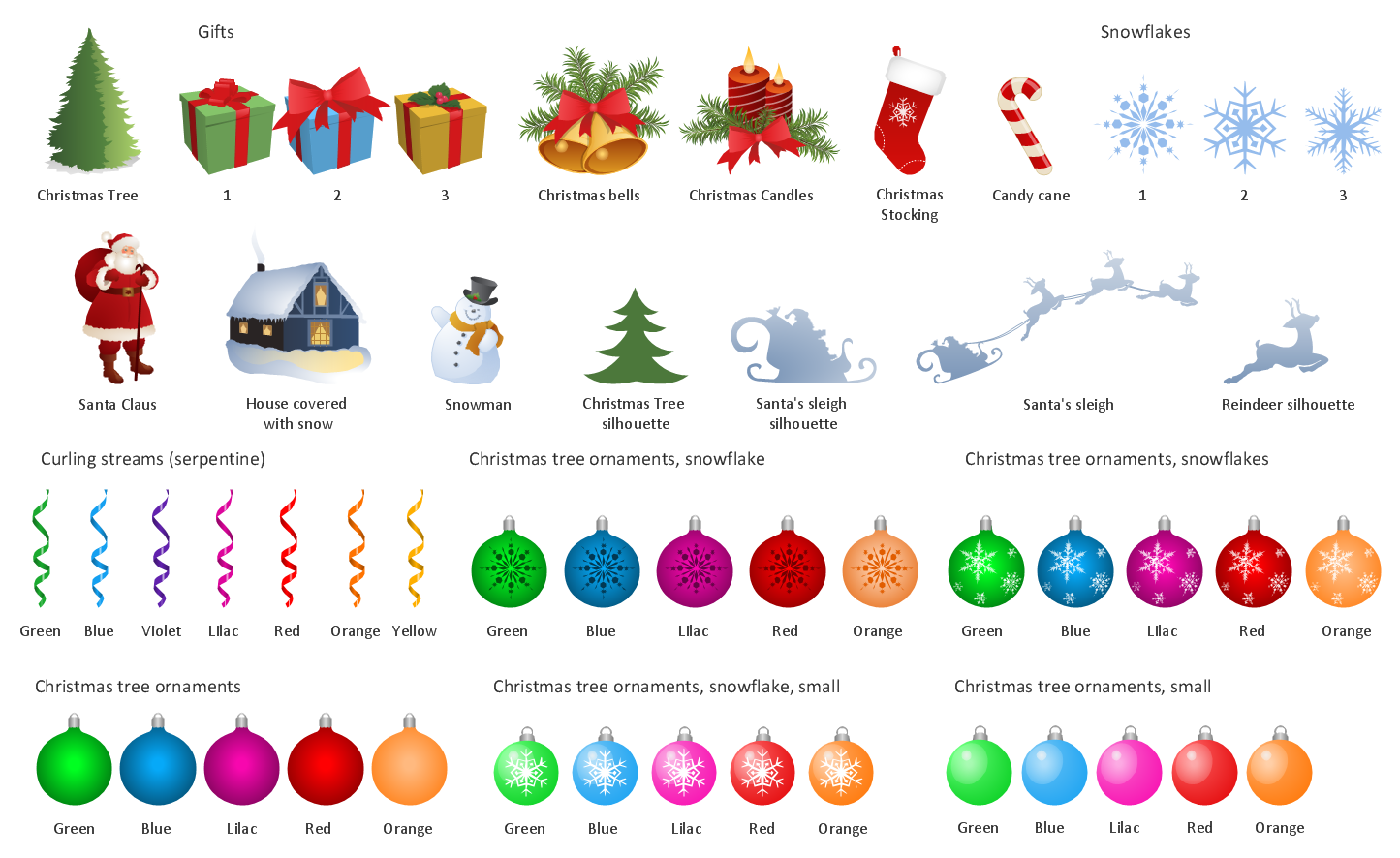 This example was created in ConceptDraw DIAGRAM using the "Christmas and New Year" library, from our Holiday Solution. An experienced user spent 5 minutes creating this sample.