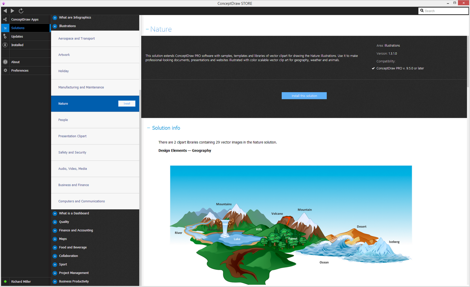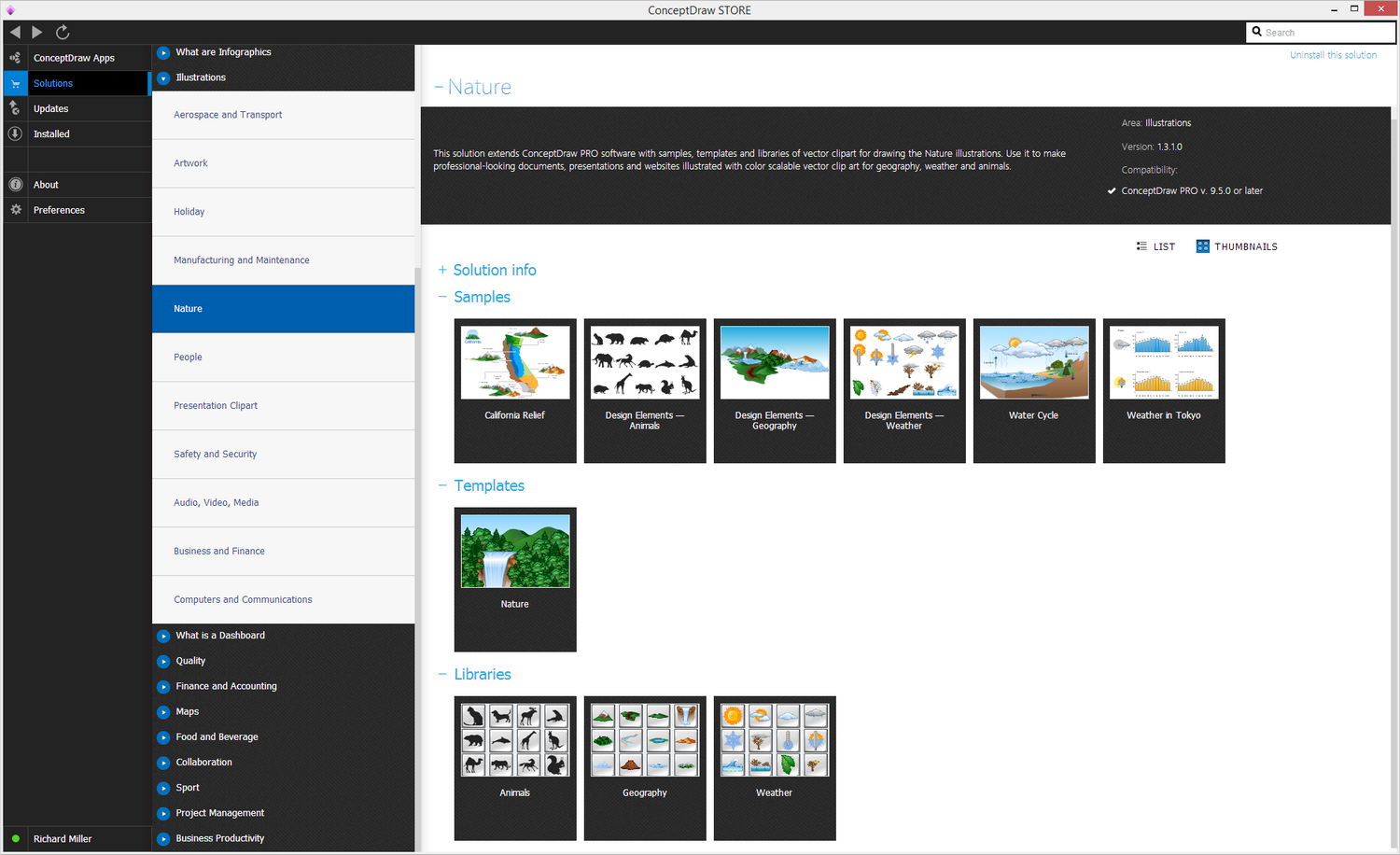 After ConceptDraw STORE and ConceptDraw DIAGRAM are downloaded and installed, you can install the Nature solution from the ConceptDraw STORE.