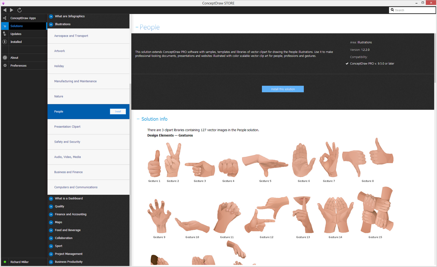 In order to create either people’s gestures or people professions-related drawing, the ConceptDraw DIAGRAM diagramming and drawing software can be used as well as the People solution that consists of the pre-made samples and templates of the people-related drawings. There are also the stencil libraries of vector clipart available for all the ConceptDraw DIAGRAM users in order to draw the people-based illustrations.