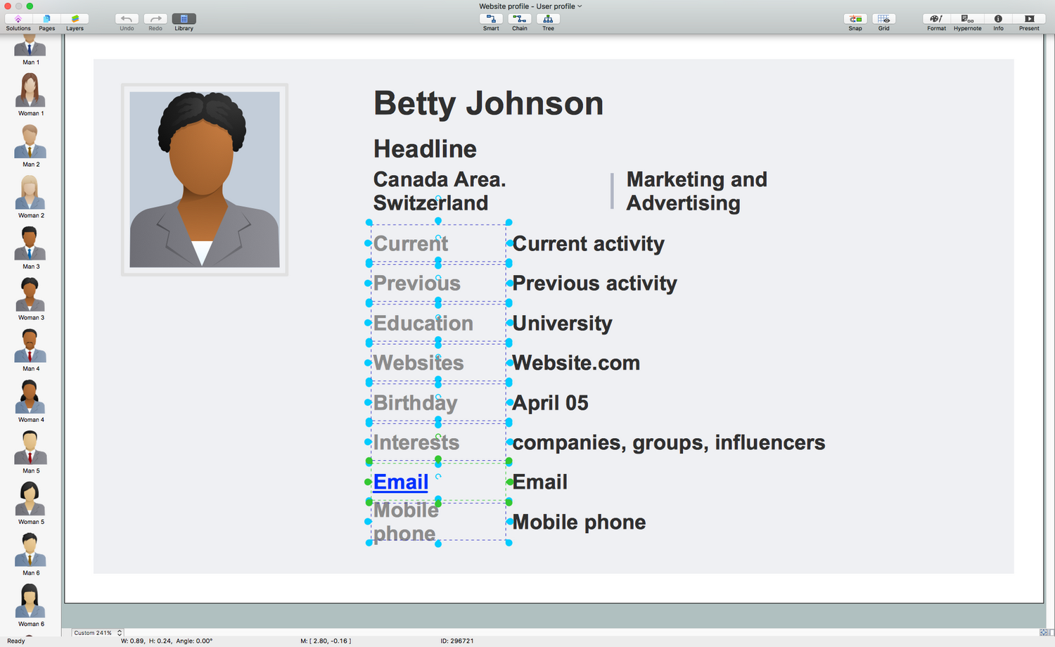 All source documents are vector graphic documents which are always available for modifying, reviewing and/or converting to many different formats, such as MS PowerPoint, PDF file, MS Visio, and many other graphic ones from the ConceptDraw Solution Park or ConceptDraw STORE. The People solution is available to all ConceptDraw DIAGRAM users to get installed and used while working in the ConceptDraw DIAGRAM diagramming and drawing software.