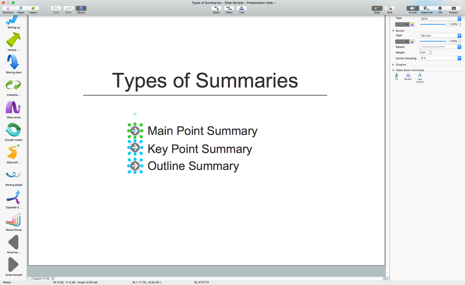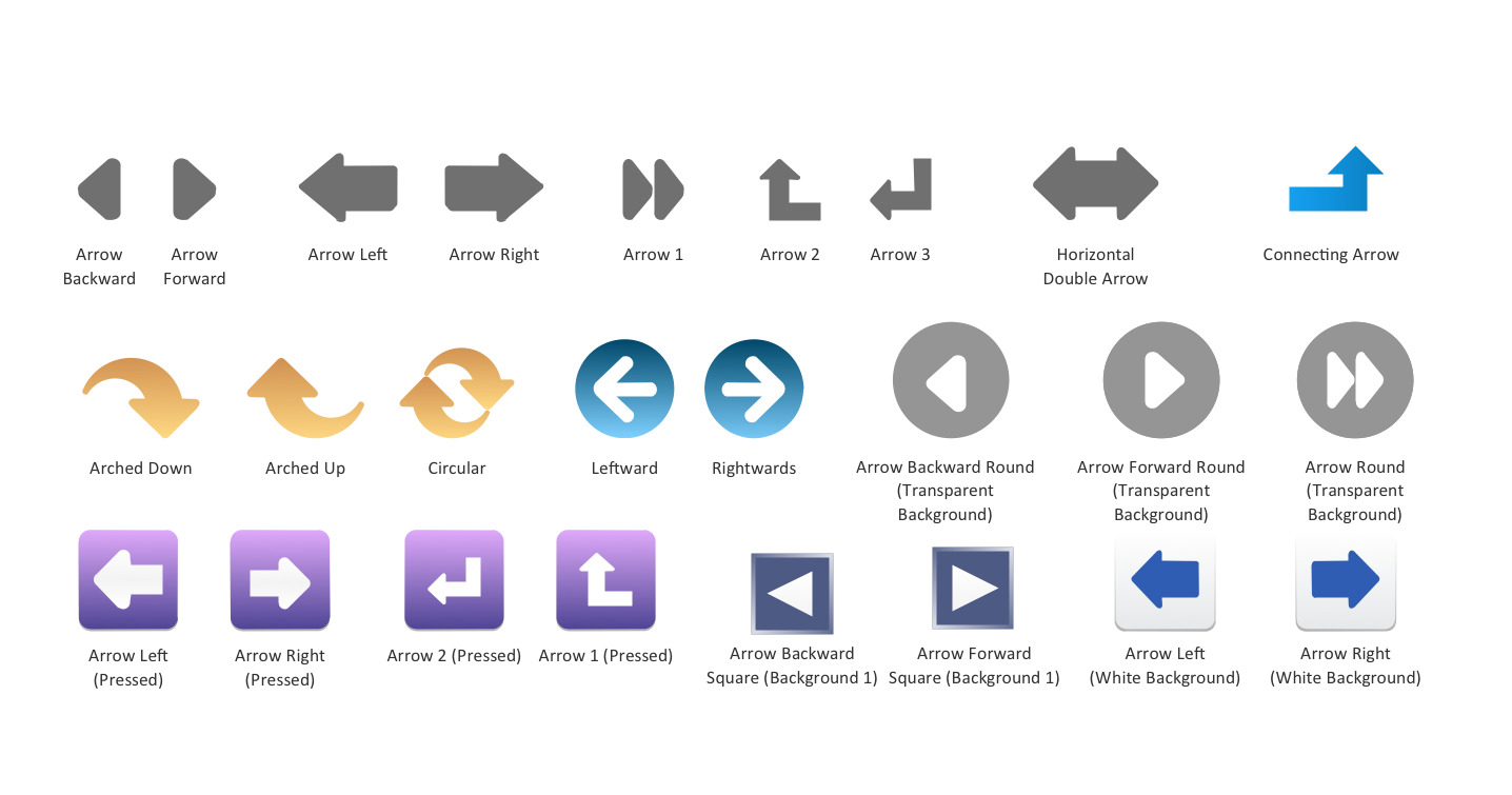 Using the Arrows library form ConceptDraw DIAGRAM allows one to add accents to a slide. The high resolution vector arrows are perfect for presentation needs, because they scale properly for large screens.