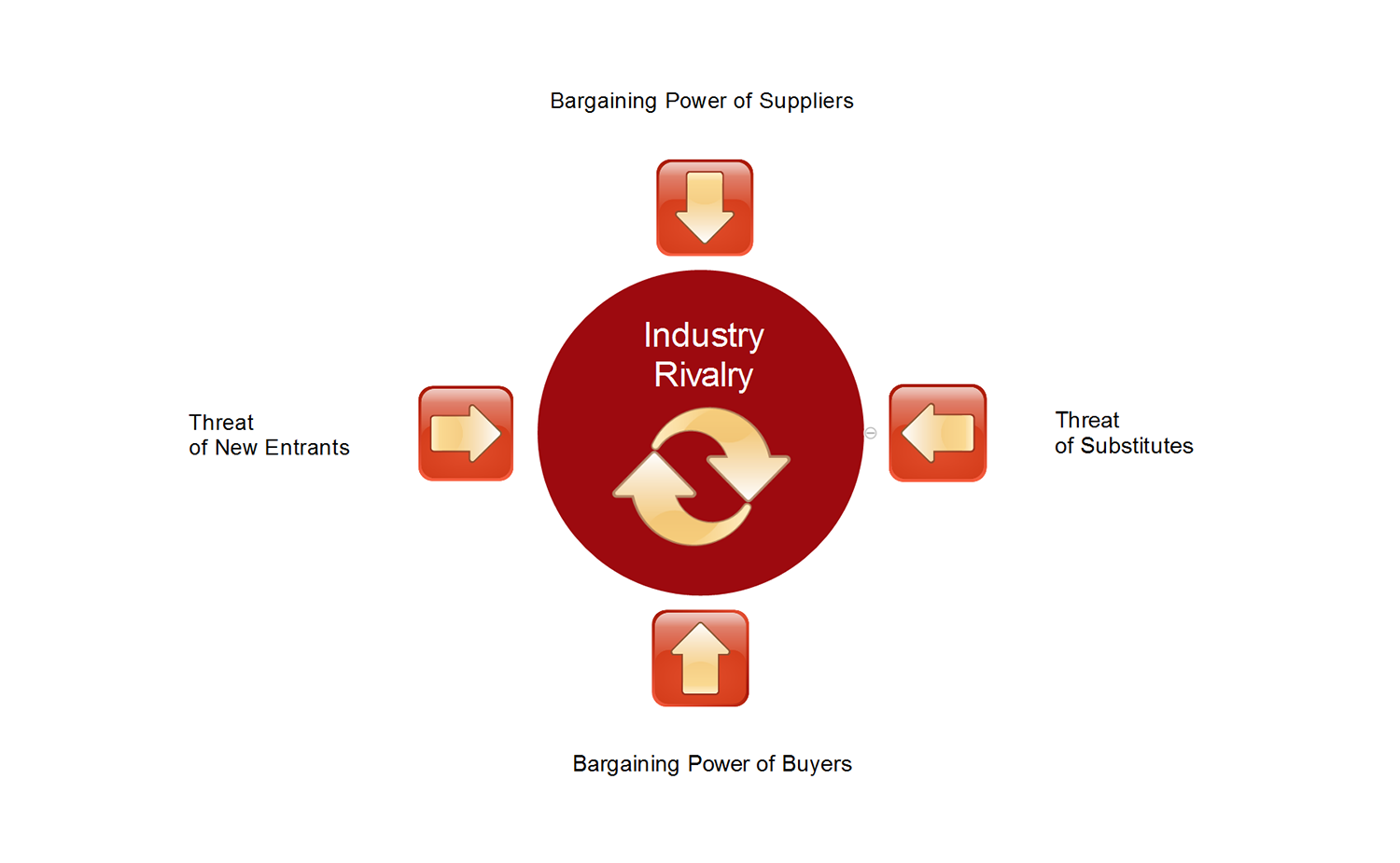 This Mind Map represents the Michael Porter's Five Forces model, which is a marketing tool applied for analyzing the competition of a business. The five forces, among which are the threat of new entrants, bargaining power of buyers, bargaining power of suppliers, threat of substitutes, and industry rivalry, determine the industry's competitive intensity, its success and attractiveness or vice versa the lack of attractiveness in terms of the profitability. The conclusion of the attractiveness is made when the effect of these five forces increases the overall profitability. At the unattractive industry, the profitability is reduced and even may approach to the pure competition. However, the overall industry's attractiveness doesn't mean that each organization or firm working within this industry returns equally great profitability. The Porter's Five Forces model is based on the paradigm of “structure — conduct — performance” and is an incredibly popular business tool no matter which field of industry you are involved.