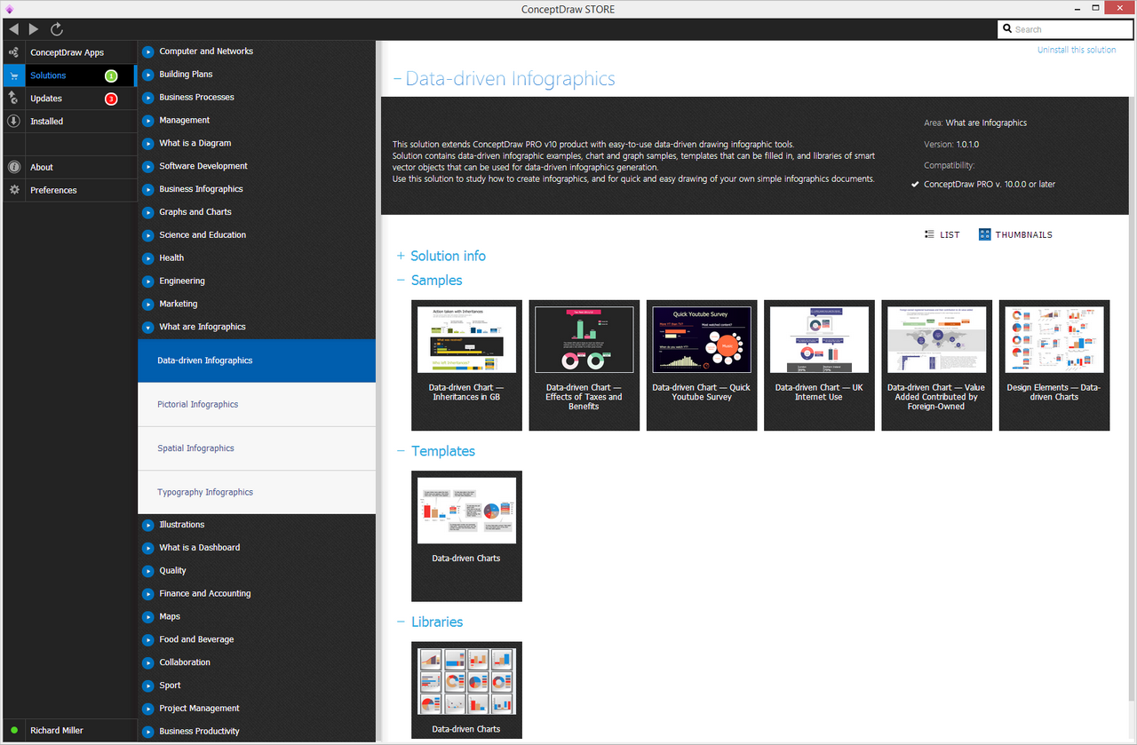 After ConceptDraw STORE and ConceptDraw DIAGRAM are downloaded and installed, you can install the Data-driven Infographics solution from the ConceptDraw STORE.