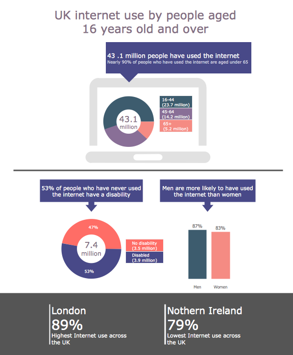 Infographic showing Internet usage in the UK — created using ConceptDraw DIAGRAM