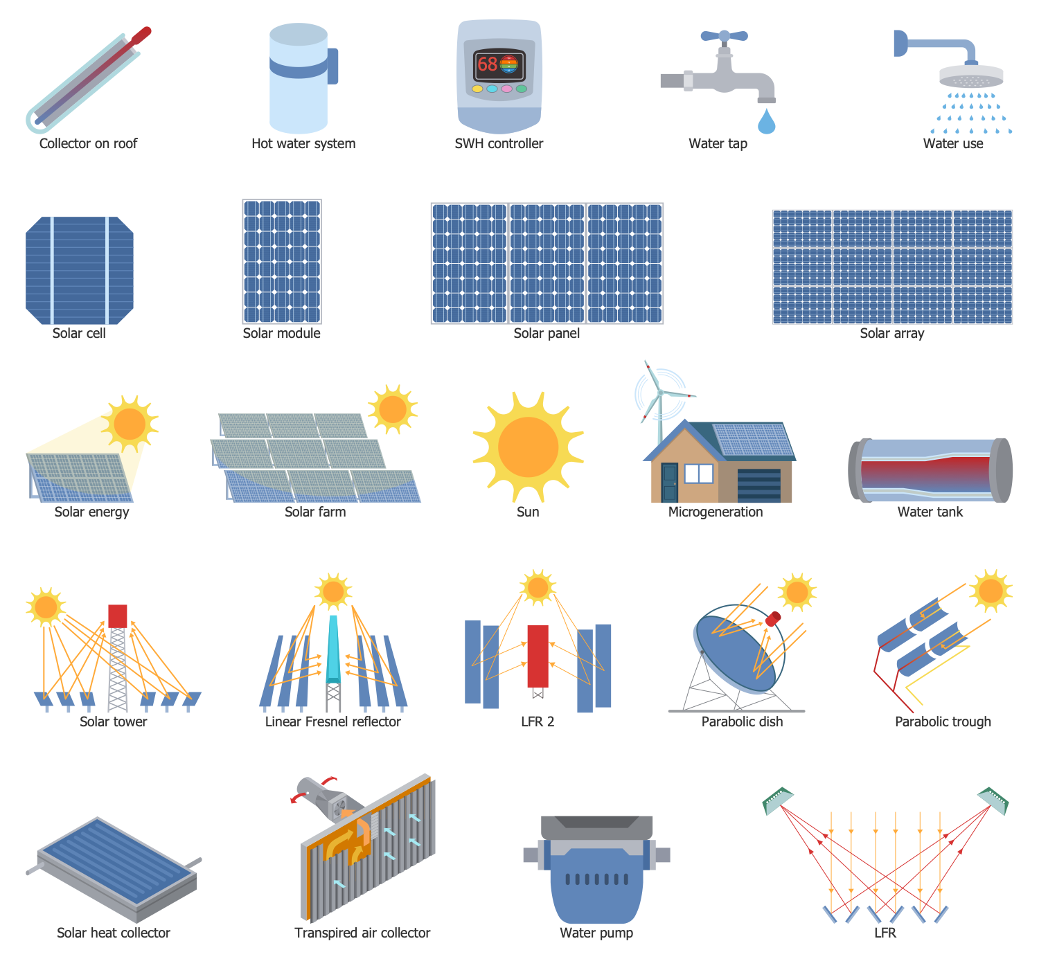 All source documents are vector graphic documents which are always available for modifying, reviewing and/or converting to many different formats, such as MS PowerPoint, PDF file, MS Visio, and many other graphic ones from the ConceptDraw Solution Park or ConceptDraw STORE. The Green Energy solution is available to all ConceptDraw DIAGRAM users to get installed and used while working in the ConceptDraw DIAGRAM diagramming and drawing software.