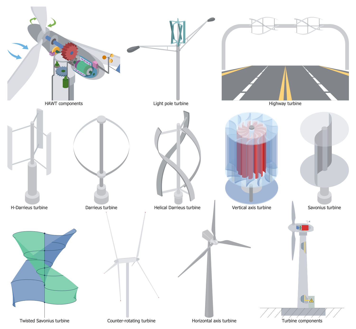 Start using the Green Energy solution to make the professionally looking illustrations by adding the design elements taken from the stencil libraries and editing the pre-made examples that can be found there.