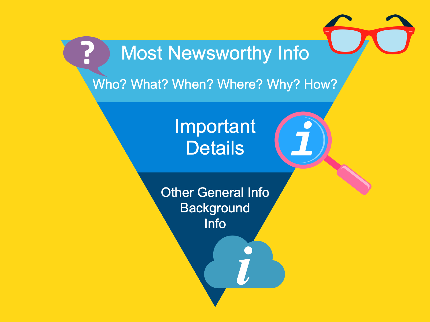 This sample is dedicated to the inverted or upside-down pyramid term used in journalism and mass media. The inverted pyramid scheme was invented in the 19th century, but it is still relevant today. It is the most famous news writing scheme, also used when writing stories and texts of other kinds, blog posts, marketing factsheets, etc. The inverted pyramid is also a way to illustrate how information should be prioritized and structured. It looks like a triangle pointing down. In the upper and widest part of the inverted pyramid are placed the most interesting, significant and eye-catching information and materials. The short answers to the main questions like who, what, when, where, why and how should be there. A little lower are placed important details and then at the movement to triangle's lowest top is presented the information of less and less importance. Thus, the narrower and lower part is the less important material it contains.
