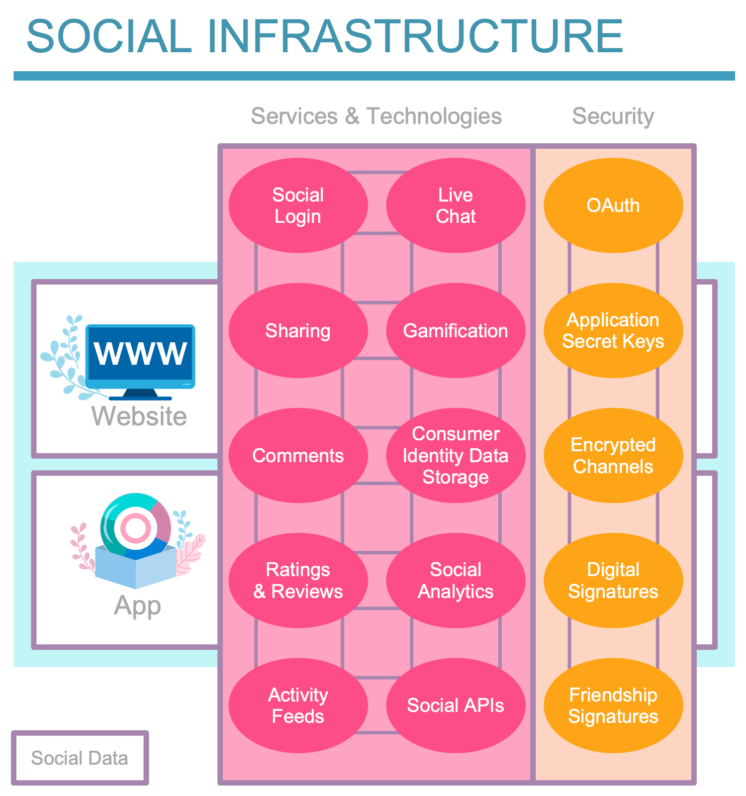 This sample focuses on social infrastructure, which is part of the infrastructure sector. It includes a set of industries and enterprises that provide social services, thereby ensuring a good quality of life for the population, increasing social comfort and affecting economic activity, human competitiveness in science, technology, and skills development. Annually huge amounts of money are invested in the social infrastructure of almost all countries. The unique sets of institutions and ways are developed by each country to improve its social infrastructure. In general, the development of modern technologies and services, technical progress, upgrading equipment and skills, increasing security level and productivity in the field of production contribute to social infrastructure development. The diagram focuses on the great role of IT technologies, the internet, social media, social analytics, applications for various platforms, and other digital services in social infrastructure improvement.