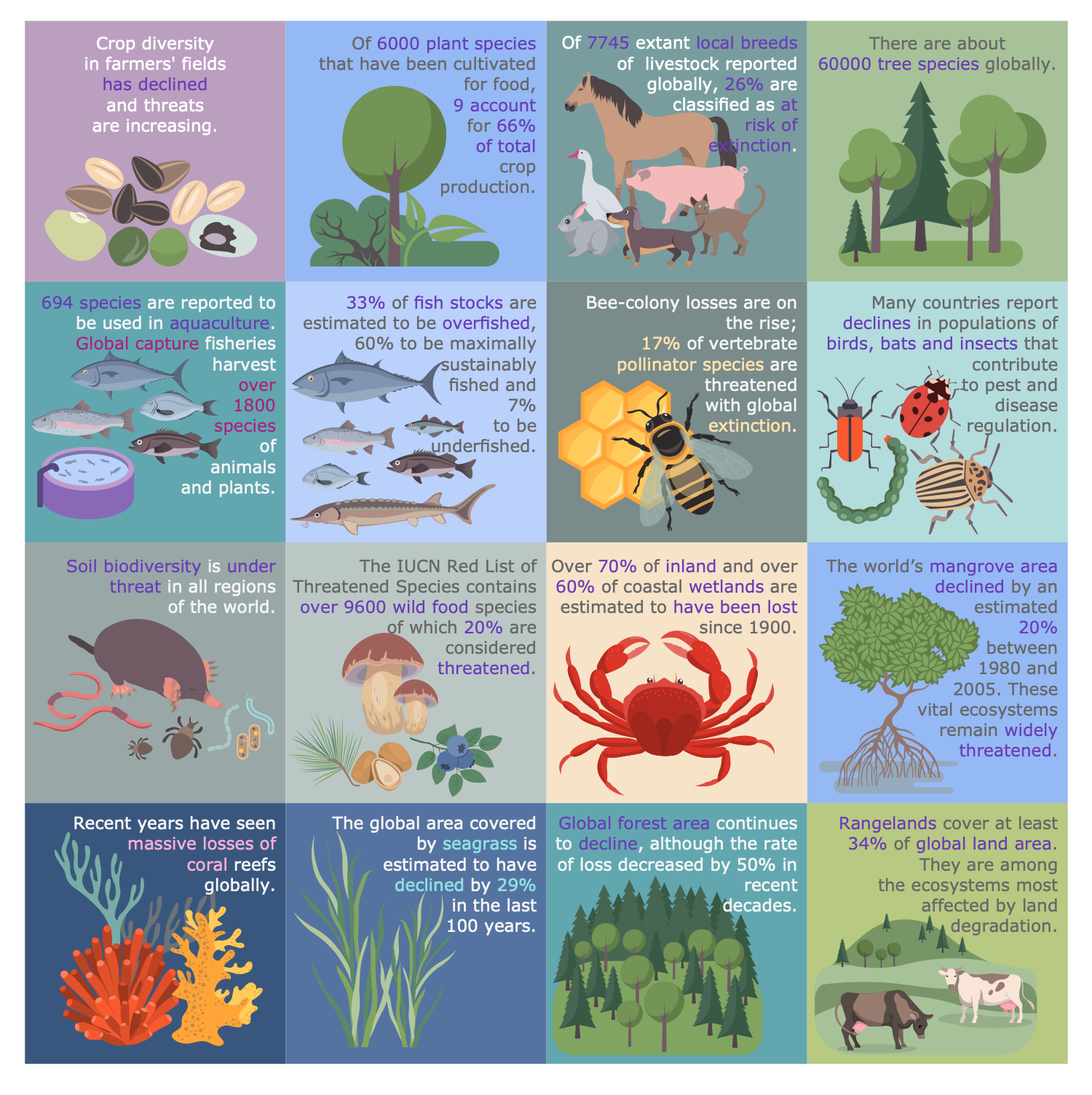 This sample shows the problem of biodiversity loss on Earth. Losses concern all forms of life: fauna, birds, insects, plants, and the underwater world. Biodiversity loss can be both local and global. At the same time, the local reduction or disappearance of individual species in a particular habitat is temporary or permanent. Meanwhile, global extinction is more serious. This is an irreversible process that causes a biodiversity crisis. However, even local death of some species can cause serious disturbances in the food chain and ultimately lead to global consequences. This sample reflects the world state and trends in this area, which are really important for the population. Because the negative impact on human health refers to the consequences of biodiversity loss. The current global loss of biodiversity is driven by population growth and human activities, changes in the use and management of land and water resources, overconsumption of resources, overfishing, and air, soil, and water pollution. This is the sixth mass extinction that is of great concern to international environmental organizations. The UN Convention on Biological Diversity sets global goals and obligations in this area.