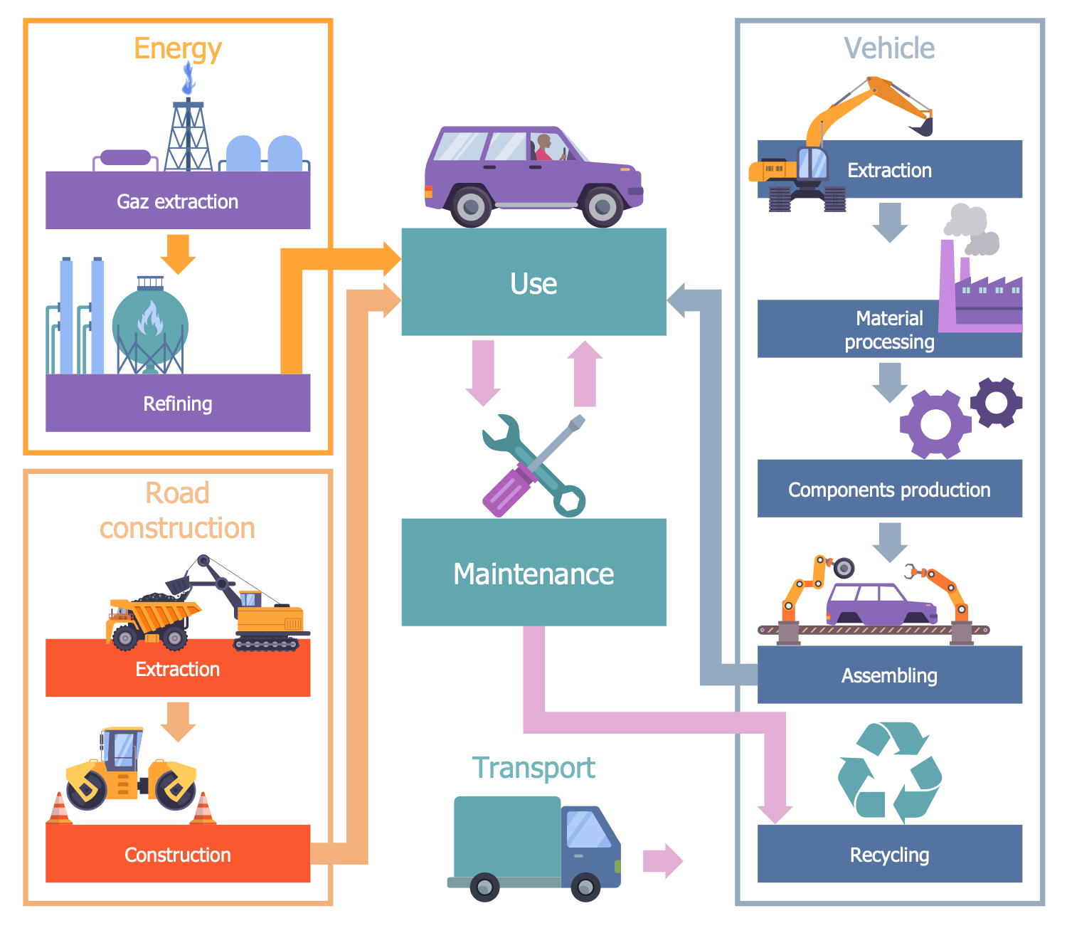 This sample shows an auto life cycle and is a way of its whole-life cost accounting from the construction to recycling. The cost of living is a key component of economic valuation. It includes financial costs for the material extraction and processing, auto production and operation, and longer-term costs including maintenance, depreciation, and recycling. It also contains environmental and social costs including energy extraction and refining costs, road construction, environmental costs, disaster preparedness and recovery costs, etc. These data have value for both manufacturers and consumers. They allow manufacturers to analyze and minimize whole-life costs considering direct, indirect, and intangible costs and draw conclusions about environmental costs. They also help consumers to compare several modifications, evaluate their value, costs, and benefits, and make a purchase decision. Because low costs to create or purchase do not mean further low long-term maintenance and operation costs. Furthermore, the initial saving may cause increased maintenance expenditure throughout the life cycle. A little additional initial investment can significantly decrease maintenance costs and help to create a worthwhile cost-effective product. The whole-life cost helps consumers choose a car that fits their needs and has the highest benefit-cost ratio option.