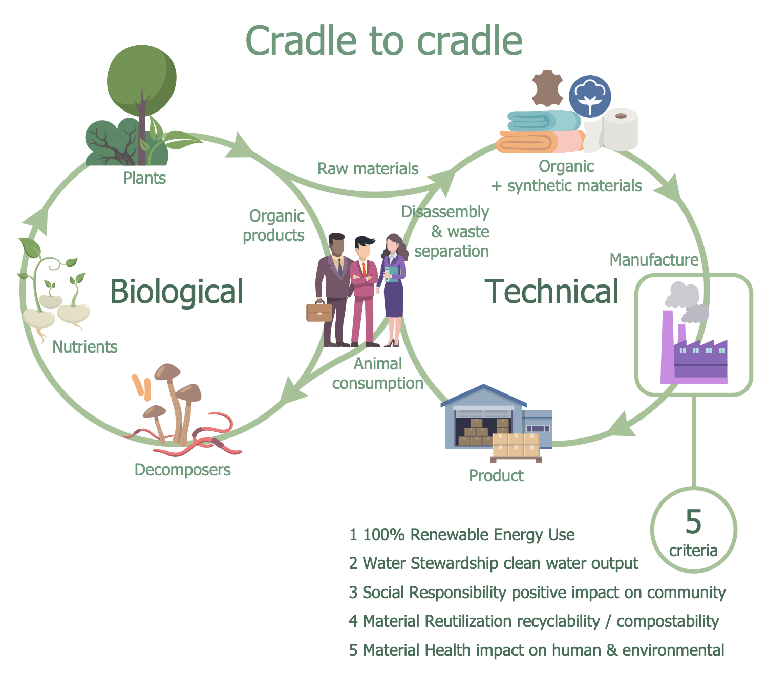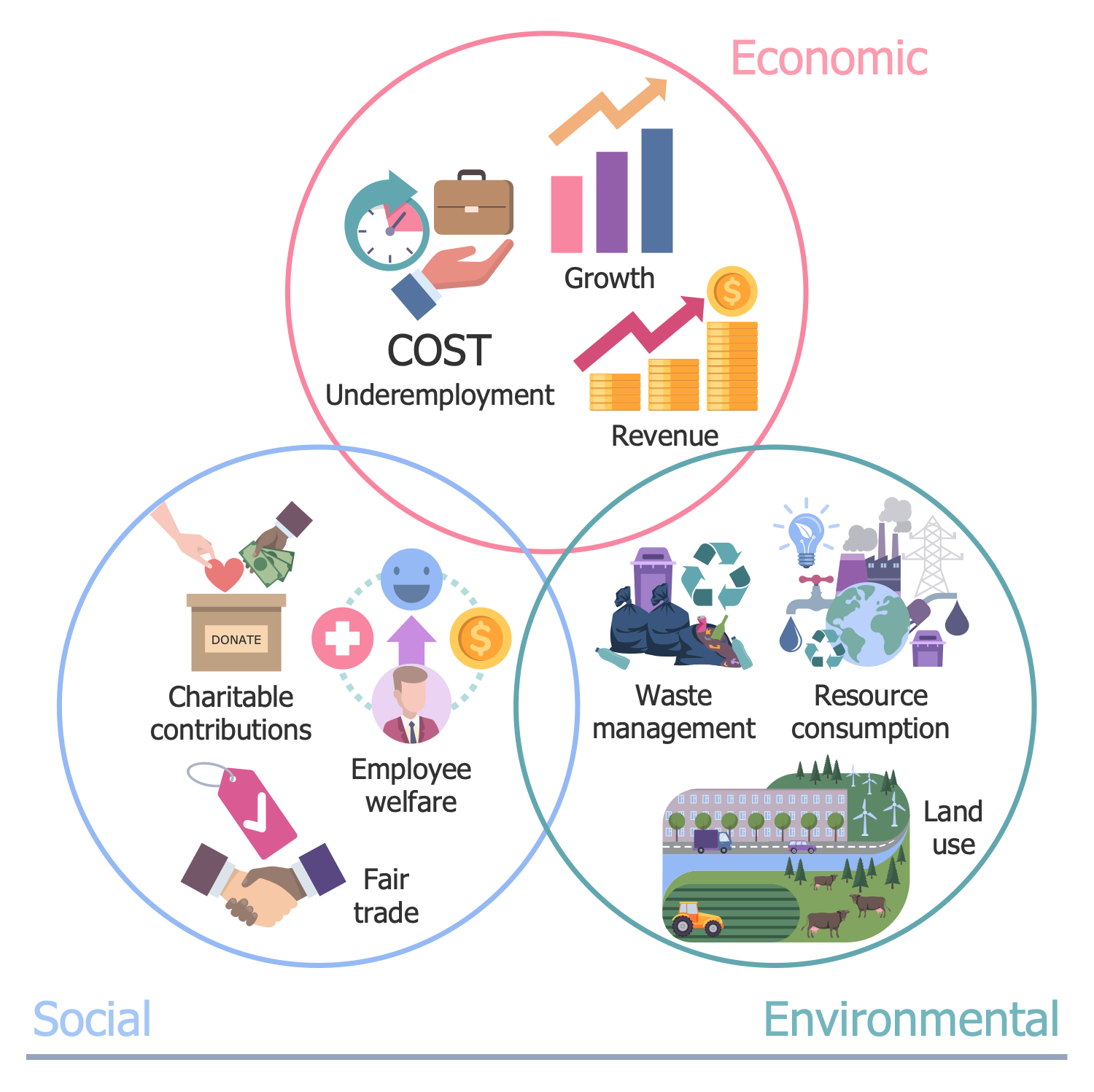 This diagram was created in ConceptDraw DIAGRAM using a combination of libraries from the Environmental, Social, and Corporate Governance Solution. An experienced user spent 5 minutes creating this sample.