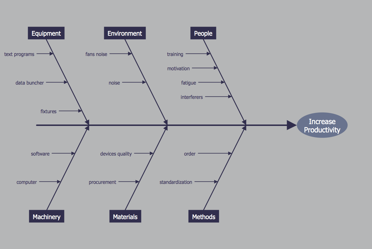 There are a few samples that you see on this page which were created in the ConceptDraw DIAGRAM application by using the Fishbone Diagram solution. Some of the solution's capabilities as well as the professional results which you can achieve are all demonstrated here on this page.