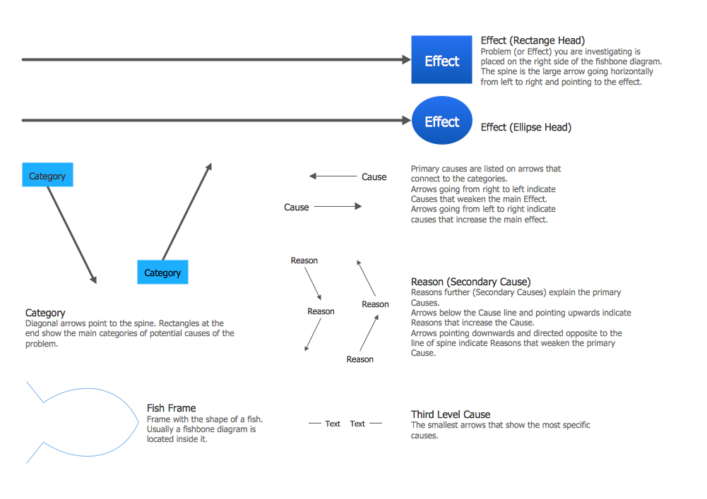 The Fishbone Diagrams solution extends ConceptDraw DIAGRAM software with the ability to easily draw the Fishbone Diagrams (Ishikawa Diagrams) to clearly see the cause and effect analysis and also problem solving. The vector graphic diagrams produced using this solution can be used in whitepapers, presentations, datasheets, posters, and published technical material.