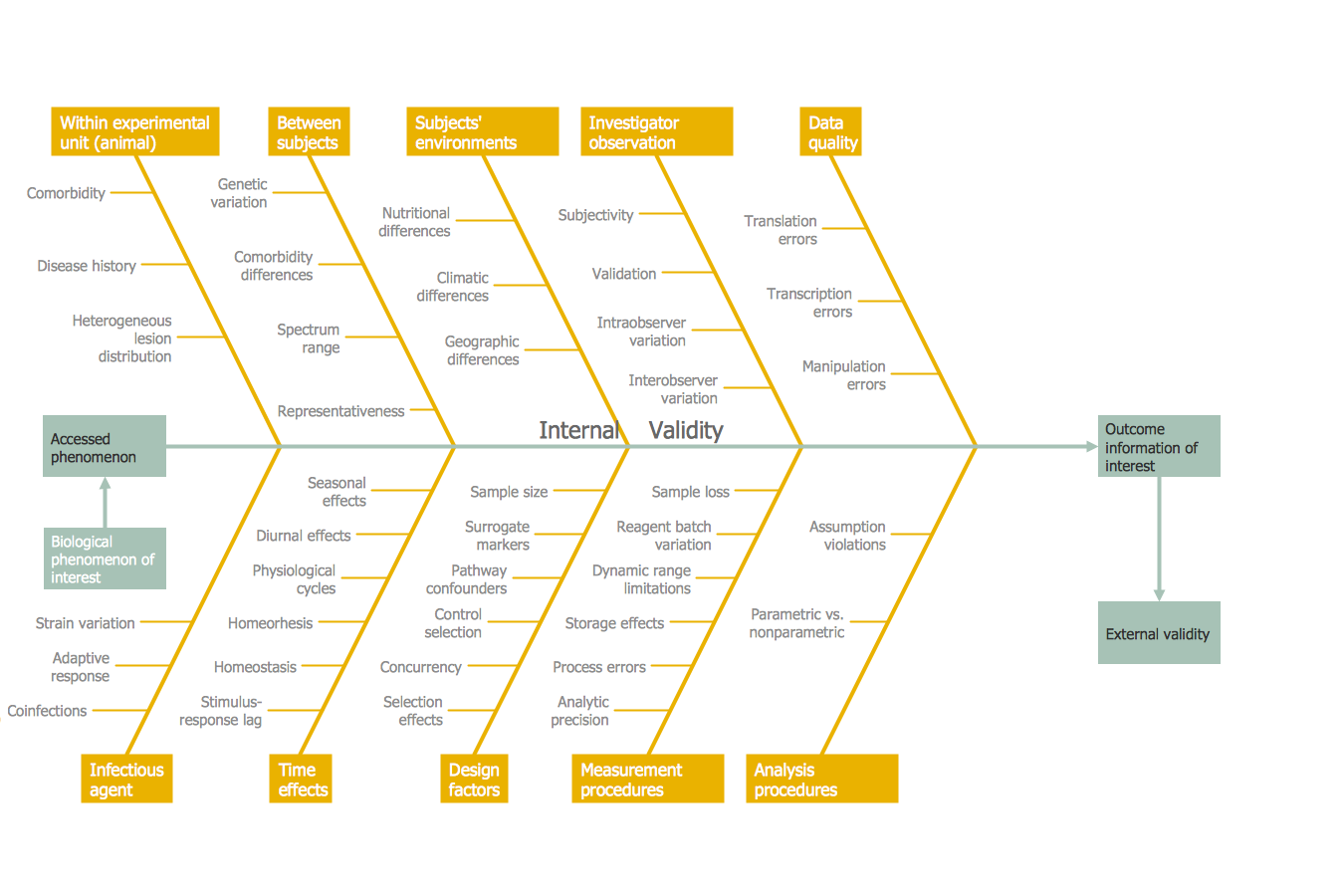 This diagram was created in ConceptDraw DIAGRAM using the Fishbone Diagrams Library from the Fishbone Diagrams Solution. An experienced user spent 10 minutes creating this sample.