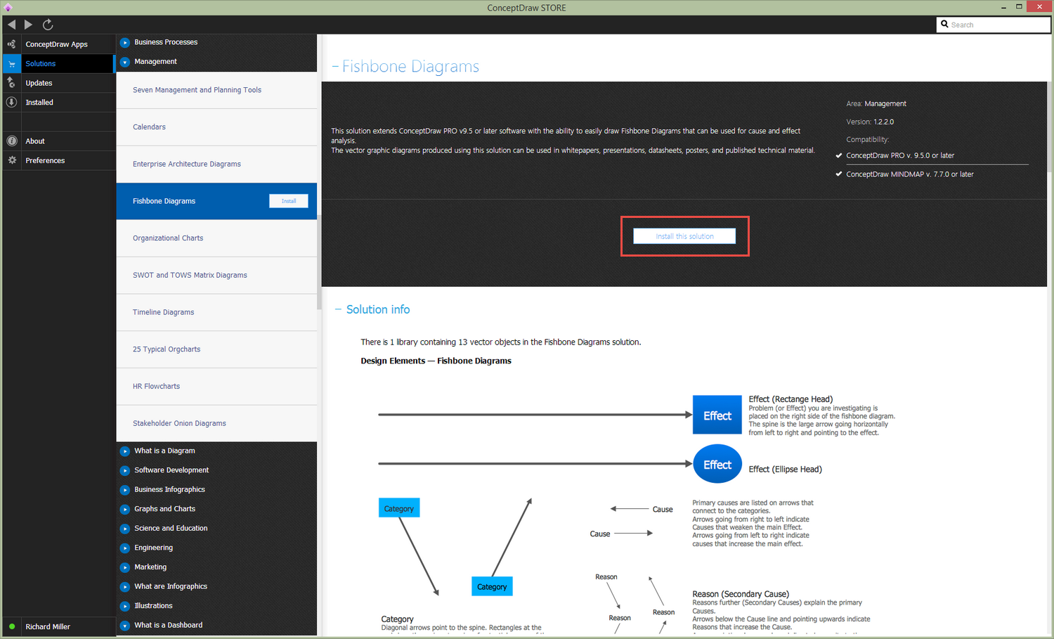 After ConceptDraw STORE and ConceptDraw DIAGRAM are downloaded and installed, you can install the Fishbone Diagrams solution from the ConceptDraw STORE.