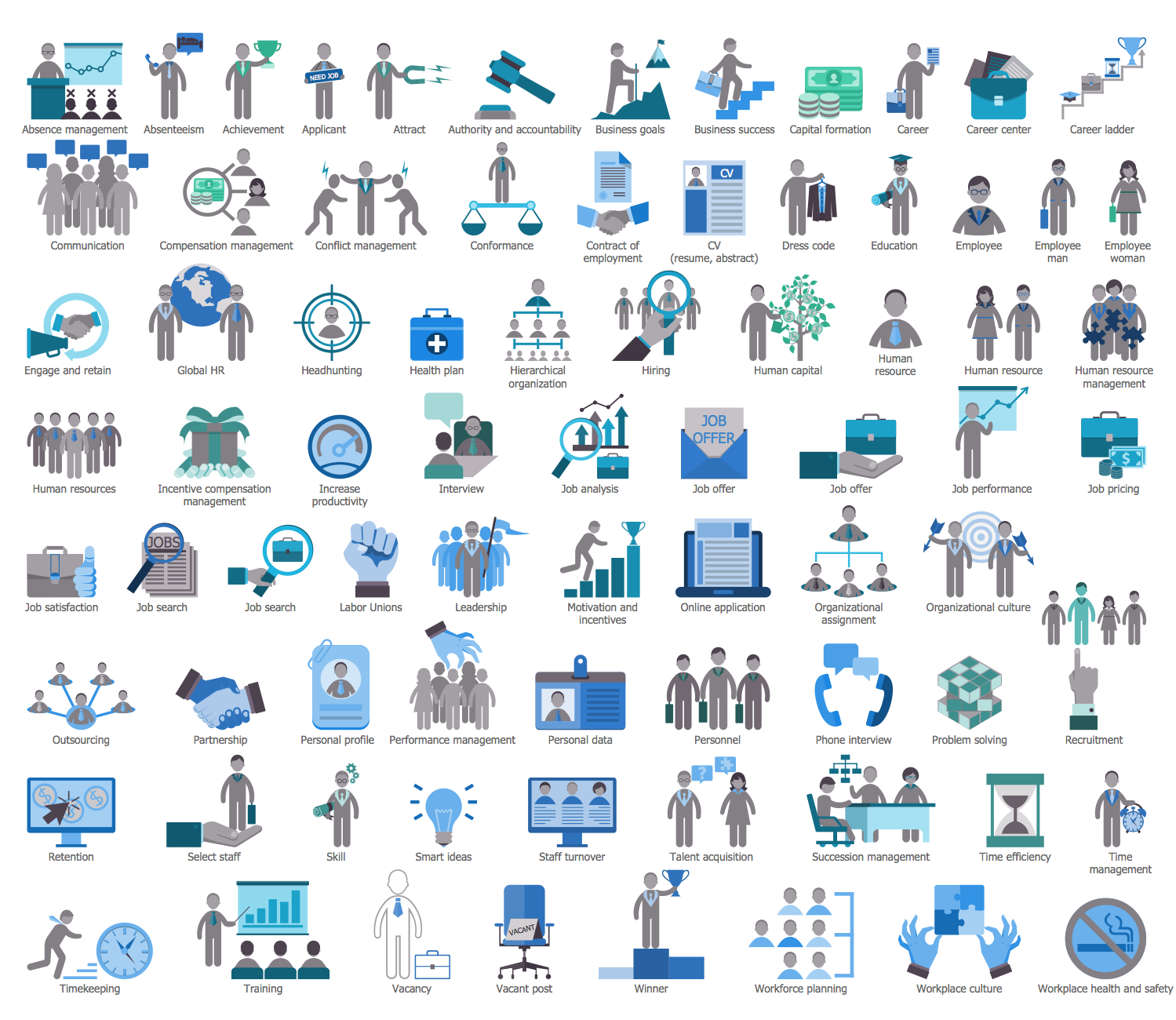 This diagram was created in ConceptDraw DIAGRAM using the combination of libraries from the HR Dashboard Solution. An experienced user spent 10 minutes creating this sample.