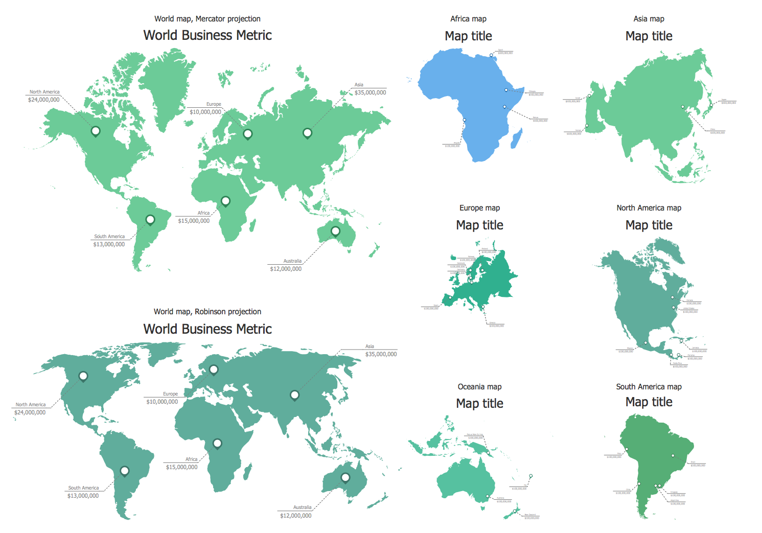 This HR dashboard template for ConceptDraw DIAGRAM software represents the Europe thematic map, the radio buttons and icons. The ConceptDraw’s Europe map object is a live object like as other thematic maps of world, all continents and Oceania included to HR Dashboard solution from the Management area of ConceptDraw Solution Park. All these live objects visualize the geospatial distribution of the levels of business metrics by continents or countries using the data from the attached Excel data source files. This and other templates included to HR Dashboard solution are the perfect base for designing own HR Dashboards, you can take any of them and create new HR diagram. Select the data source files, add extra details or information to make the most accurate and detailed diagram. All countries are marked on template, callouts depict their names and values of business metrics, with help of circles are depicted the countries’ capitals.