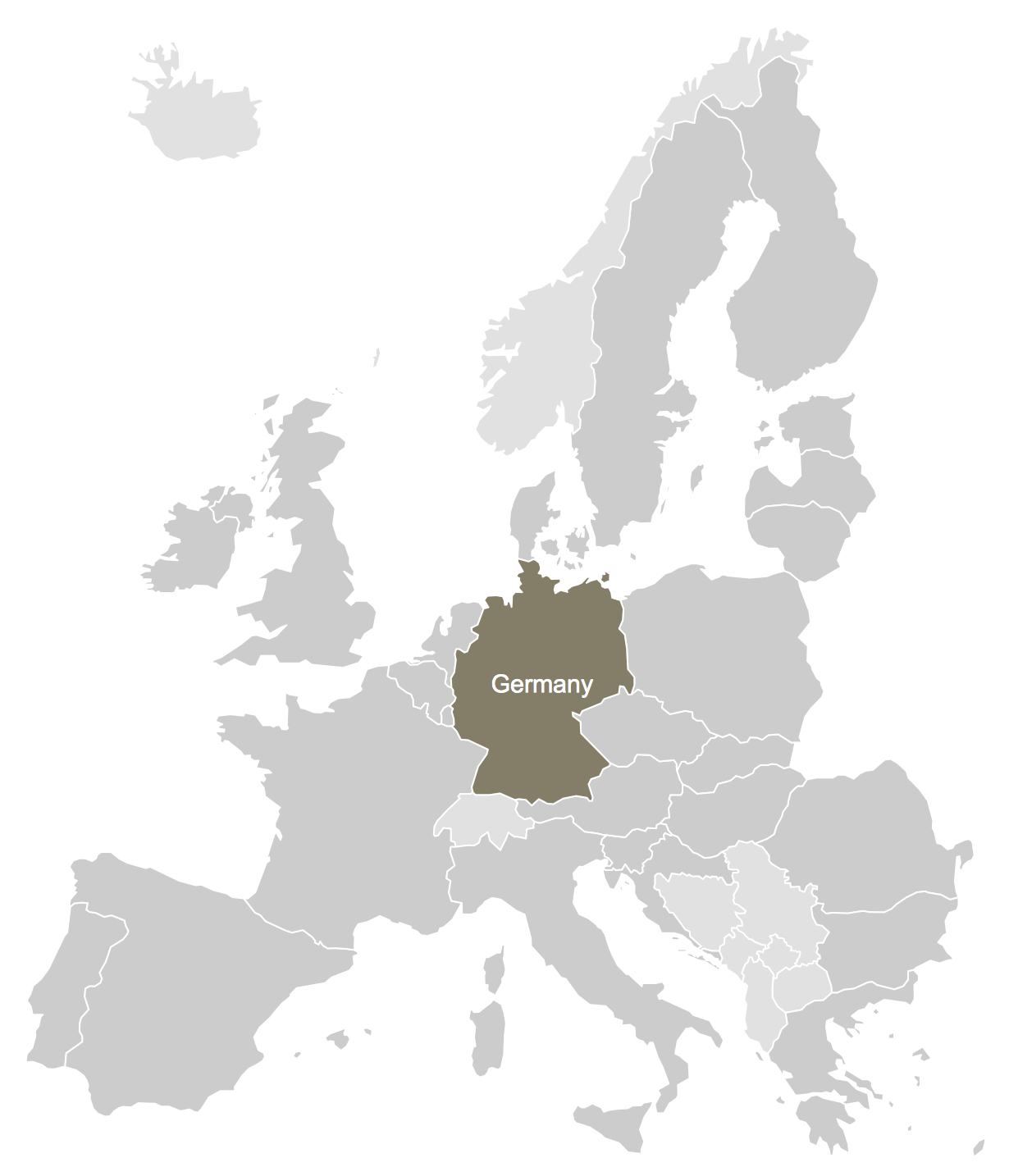 Germany is located in Central and Western Europe. Denmark is bordering it to the north, the Czech Republic, and Poland - to the east and Austria to the south-east. Switzerland is also Germany’s neighbour which can be found on the map to the south-southwest. Besides, there are France, Belgium, the Netherlands, and Luxembourg around.