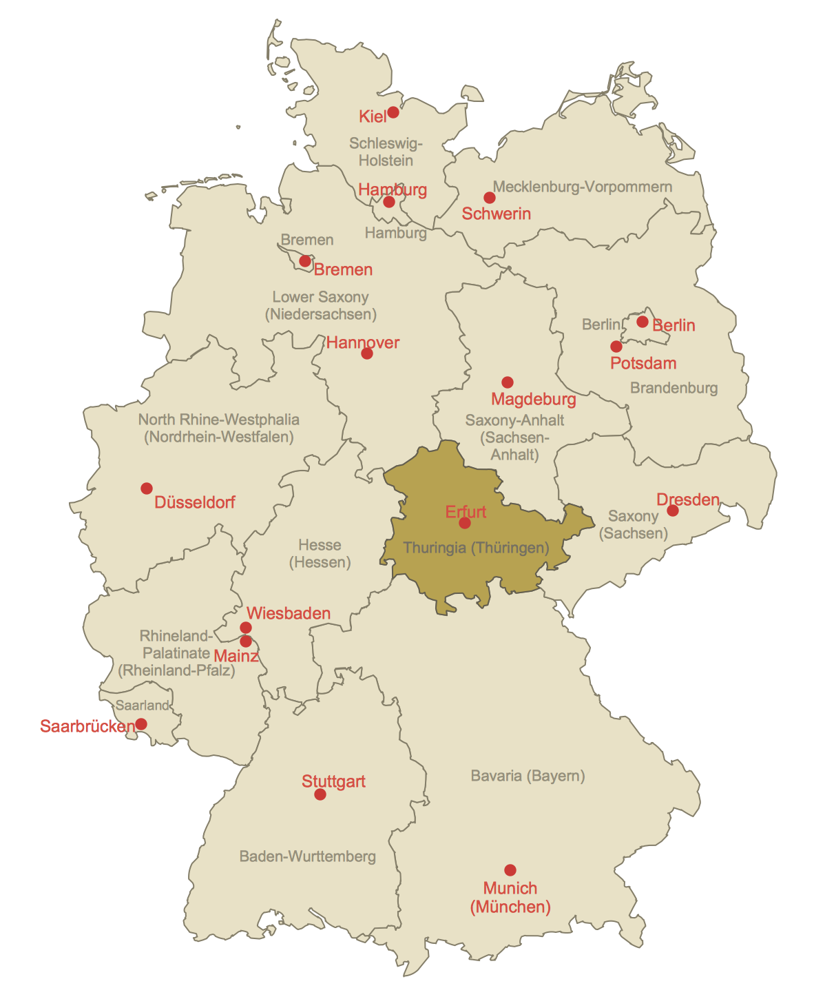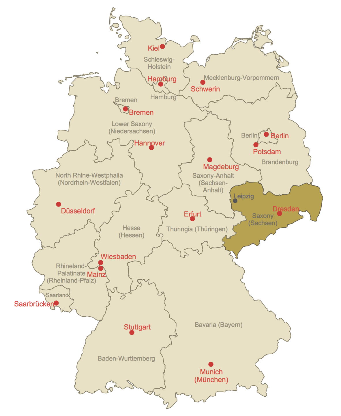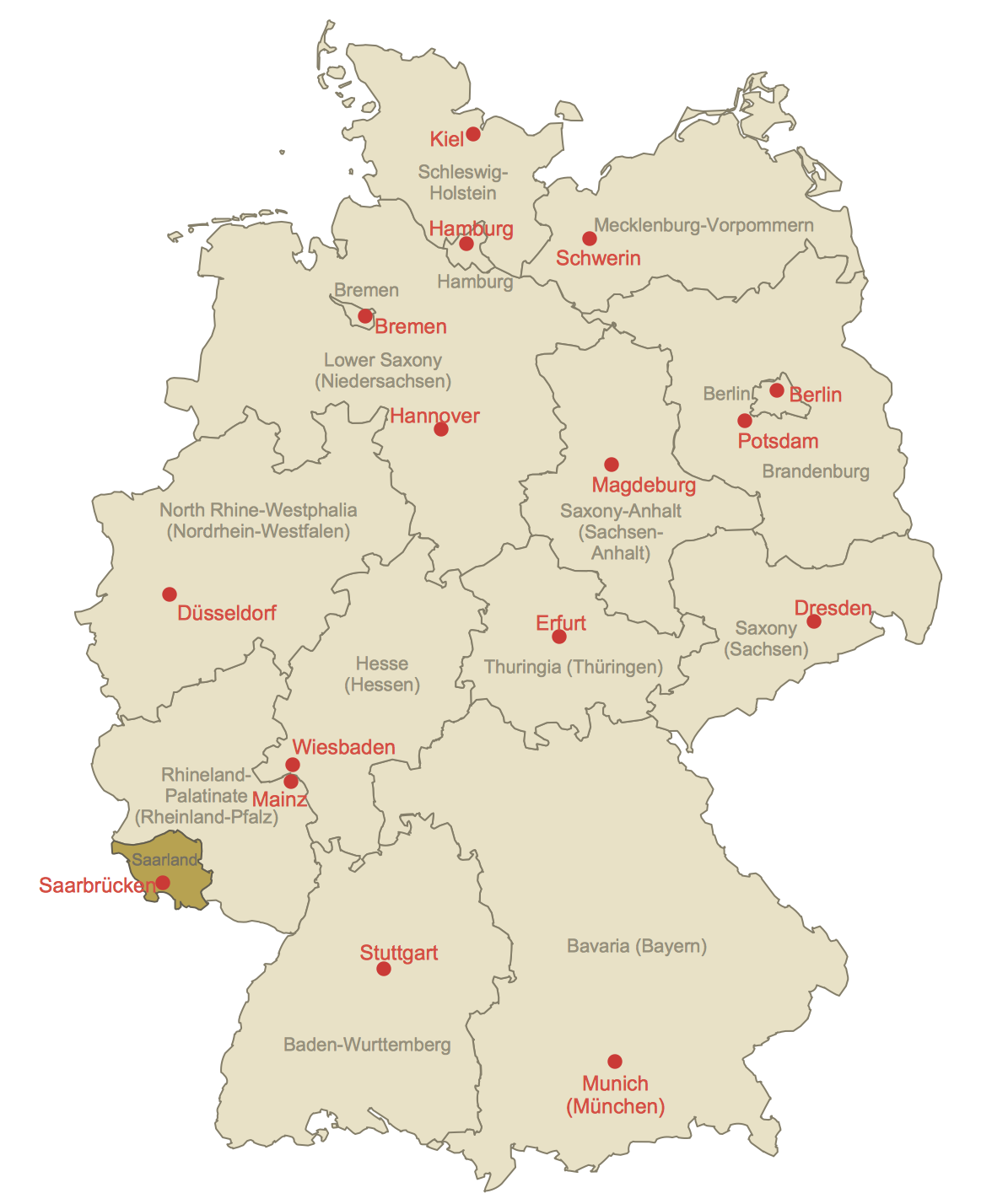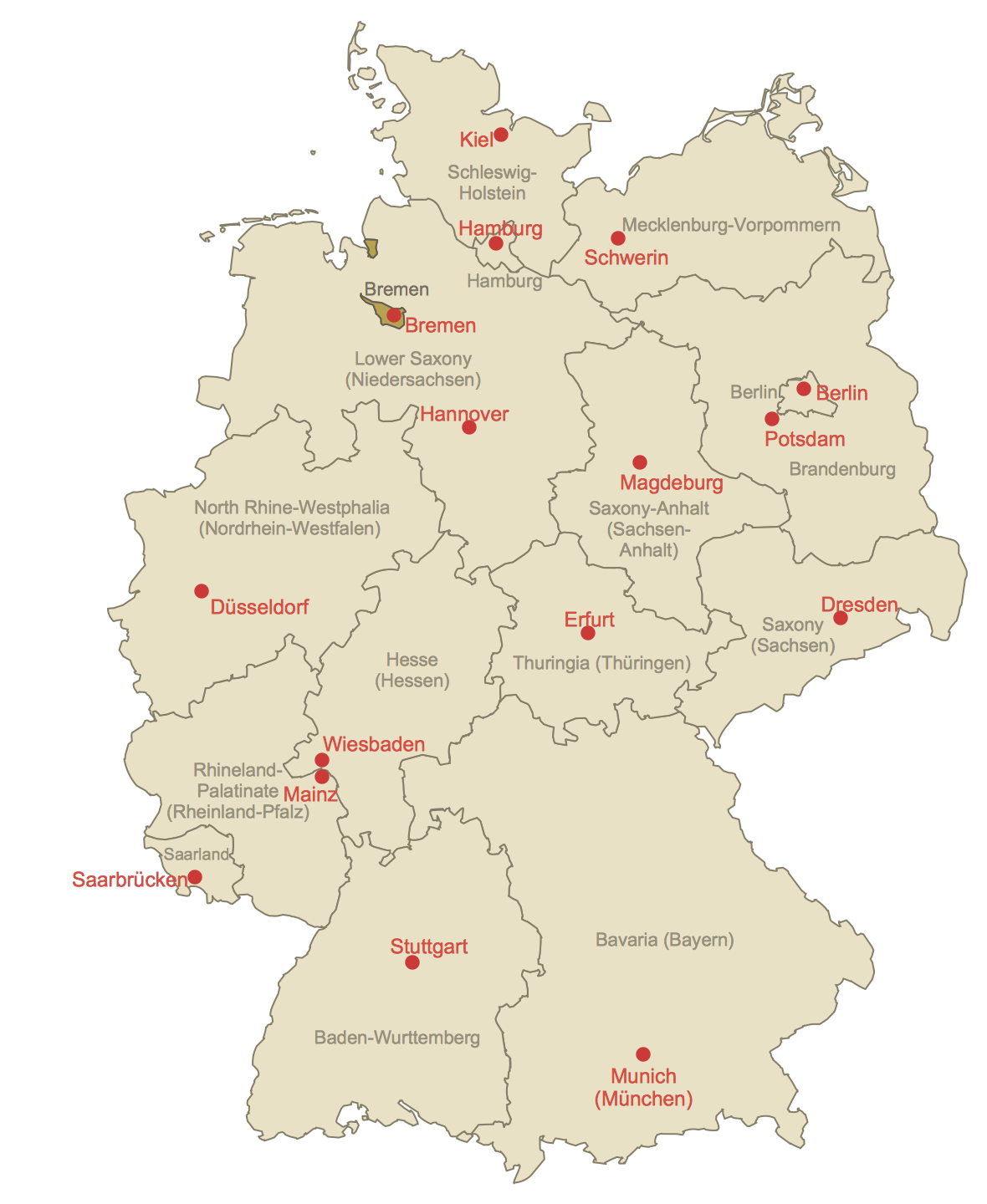 This diagram was created in ConceptDraw DIAGRAM using a Germany library from the Germany Map Solution. An experienced user spent 5 minutes creating this sample.