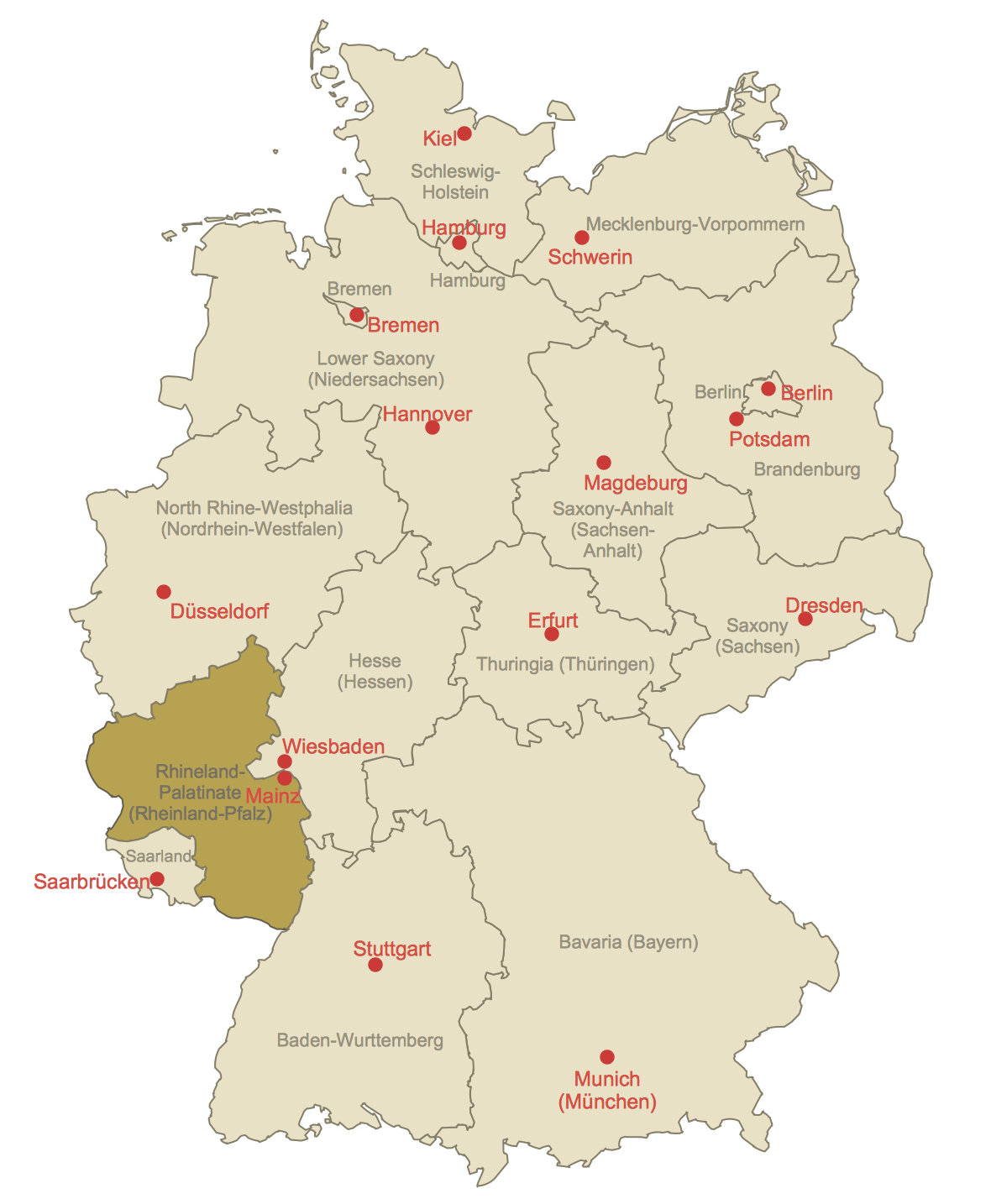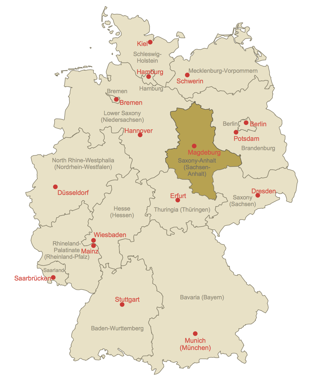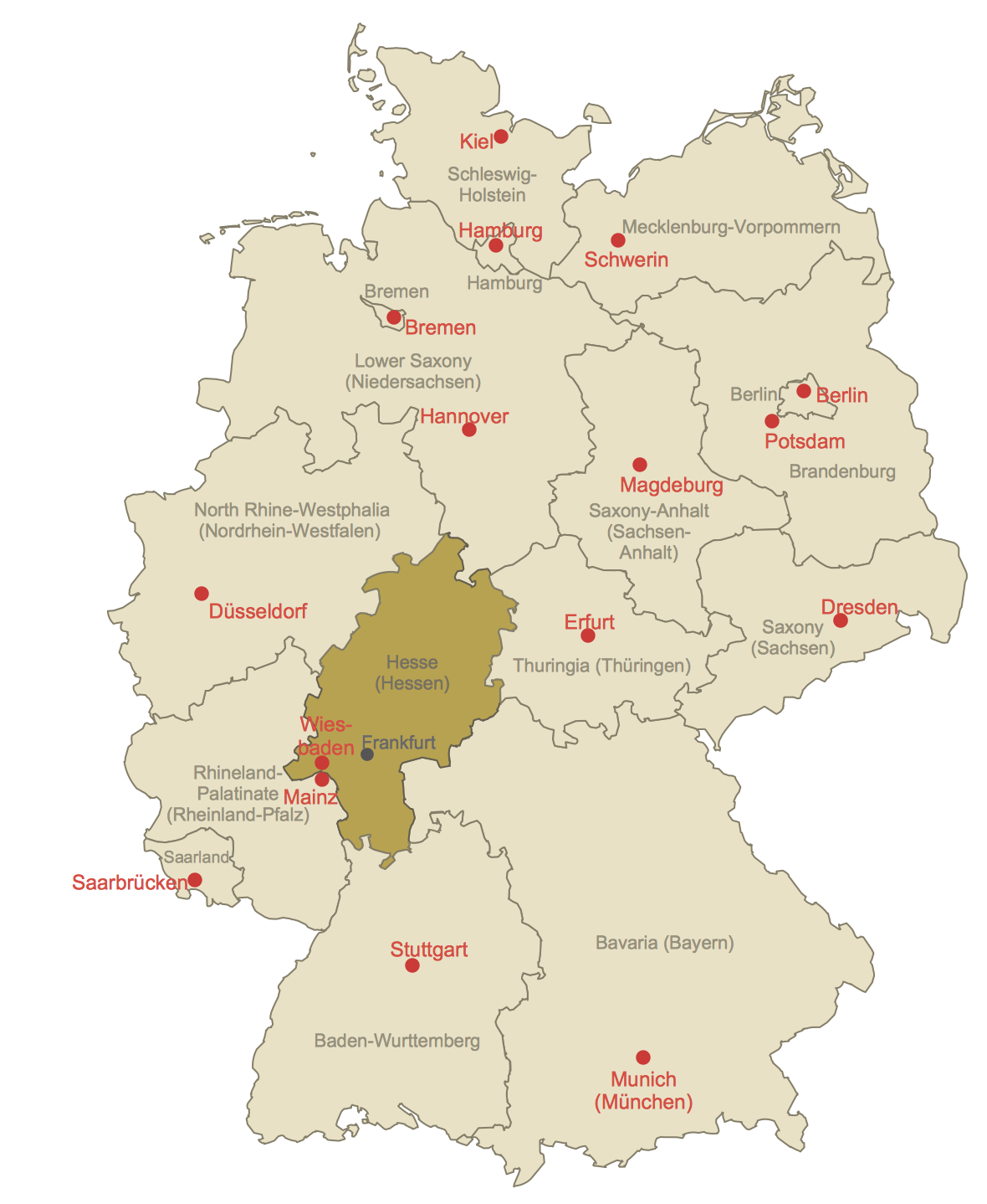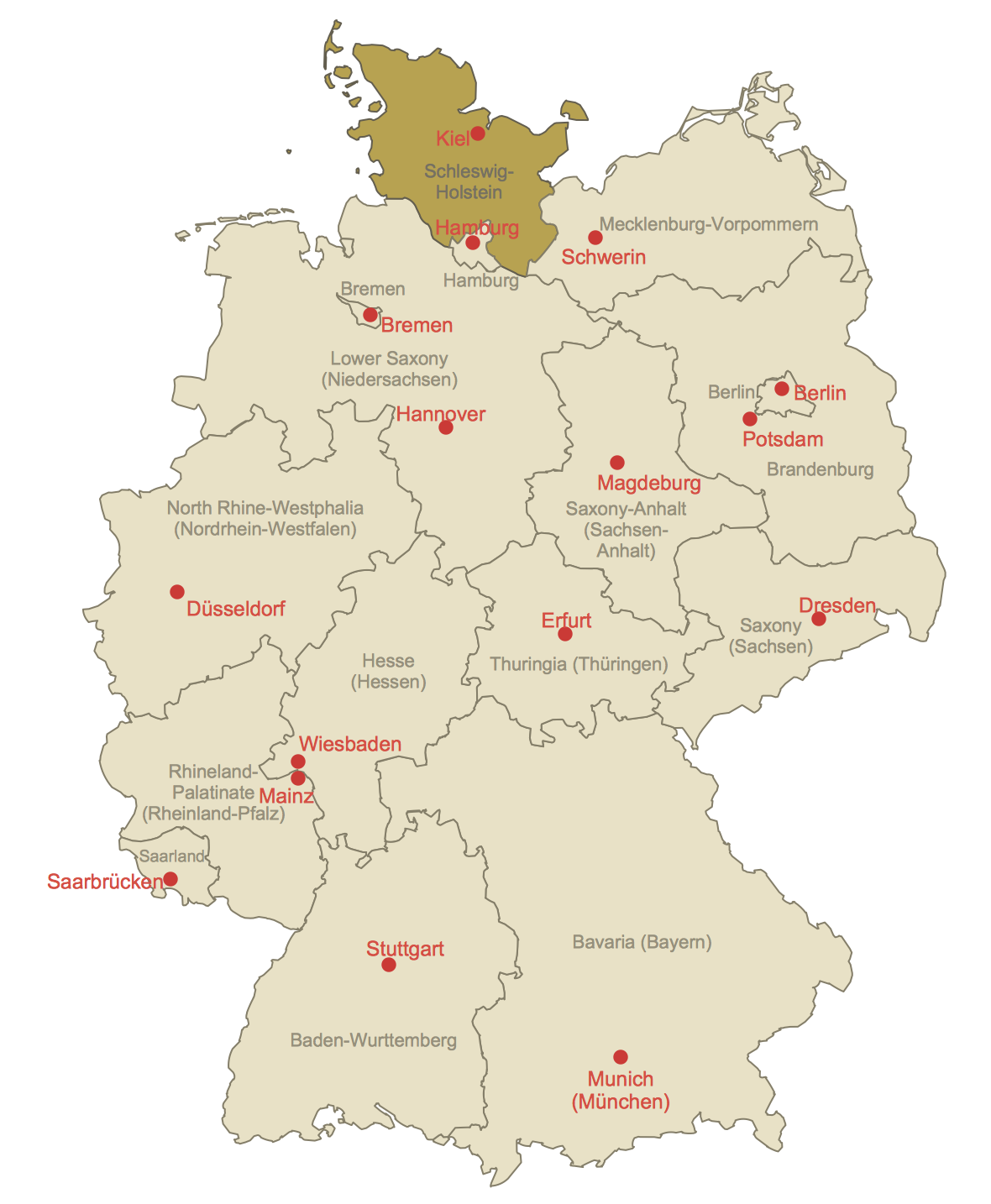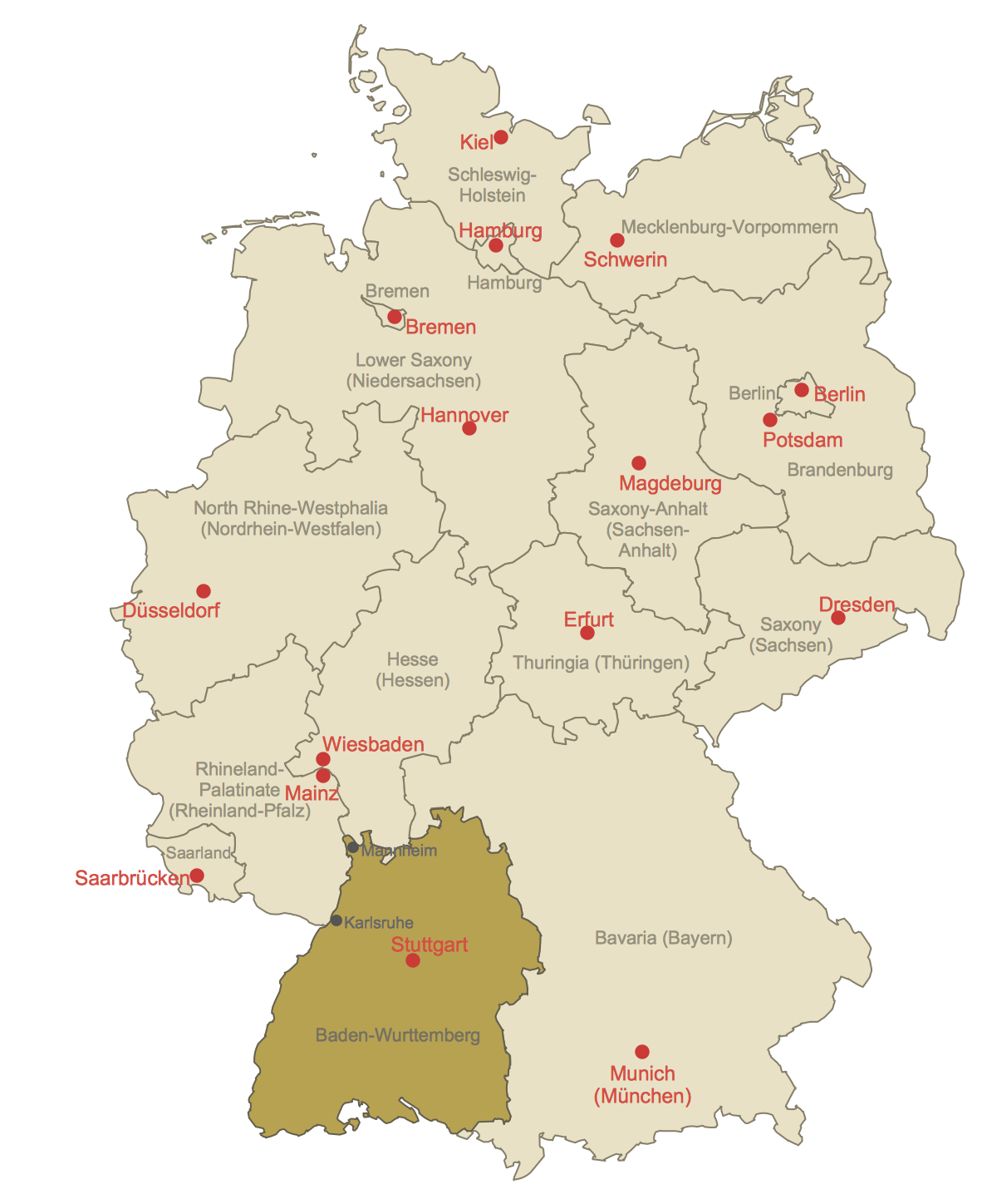 This diagram was created in ConceptDraw DIAGRAM using a Germany library from the Germany Map Solution. An experienced user spent 5 minutes creating this sample.