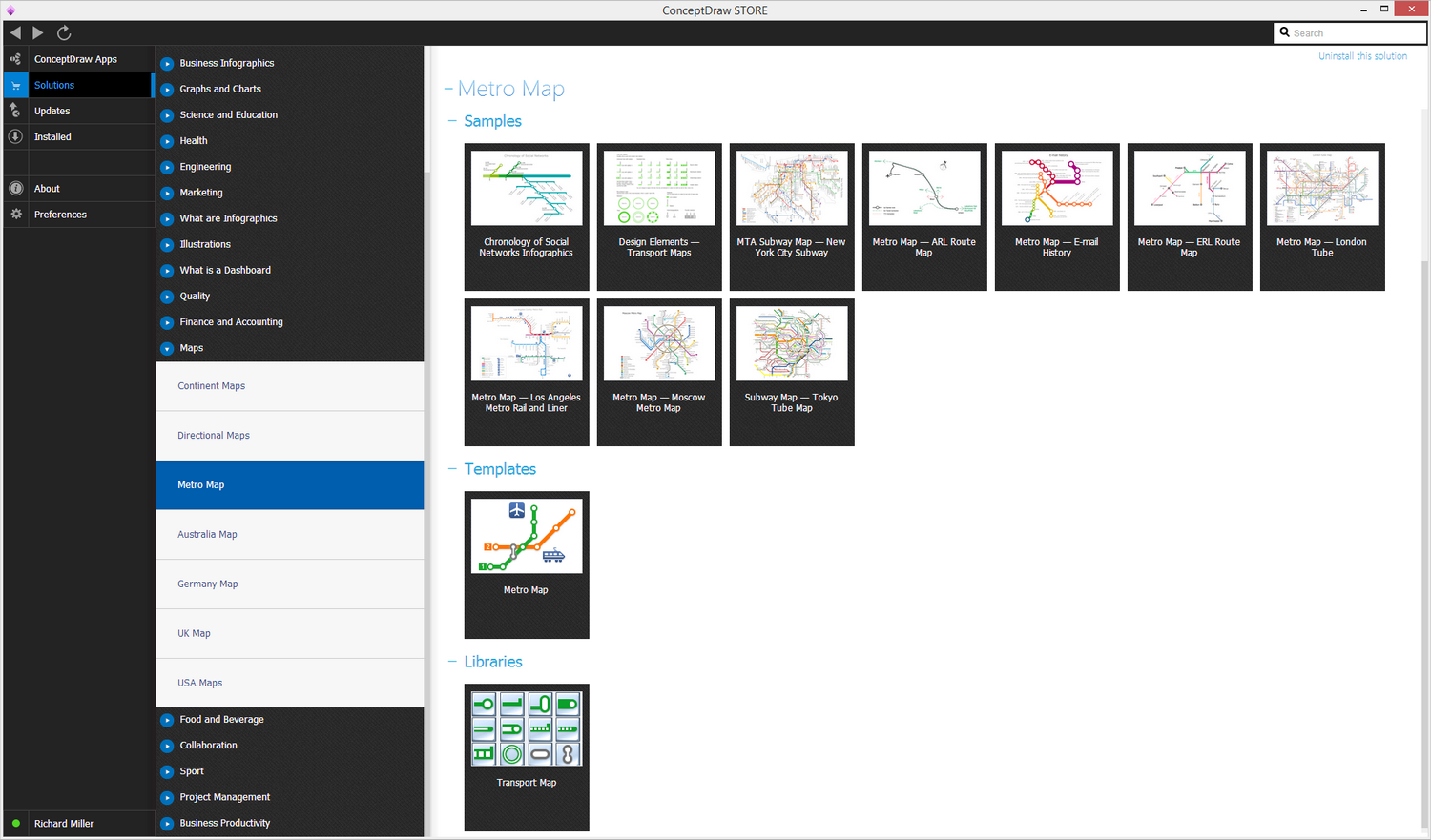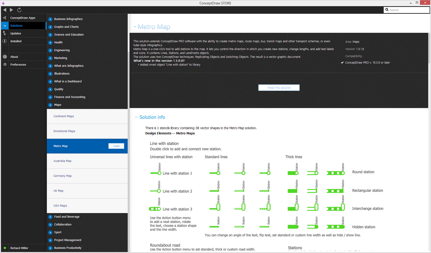 After ConceptDraw STORE and ConceptDraw DIAGRAM are downloaded and installed, you can install the Metro Map solution from the ConceptDraw STORE.