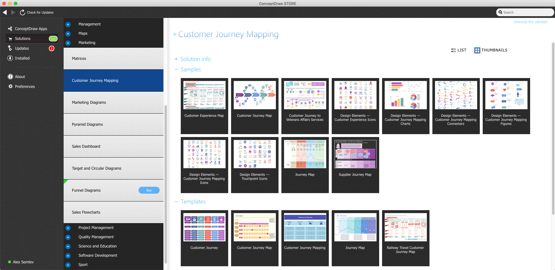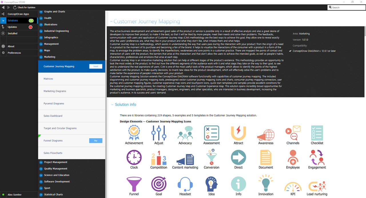 After ConceptDraw STORE and ConceptDraw DIAGRAM are downloaded and installed, you can install the Customer Journey Mapping solution from the ConceptDraw STORE.