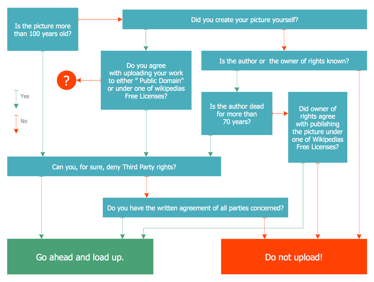 This sample shows the decision tree that is a visual and analytical tool for displaying a decision making process, all possible variants and consequences, even including resource costs, utility, expected values of competing alternatives and chance event outcomes. Decision trees look like the flowcharts designed in a form of trees and are daily used in statistics and data analysis, decision analysis and operations researches. They successfully help to define the best strategy to reach a goal. Decision trees use three types of nodes: decision nodes that are represented by squares, chance nodes are depicted by circles, and end nodes are represented by triangles on a diagram. Internal nodes represent the test on attributes, the branches are the outcomes of tests and leaf nodes represent the class labels, at this decision is taken after computing all attributes and the path from a root to leaf represents classification rules. It is useful to use the color accents for the final decisions to make them evident.
