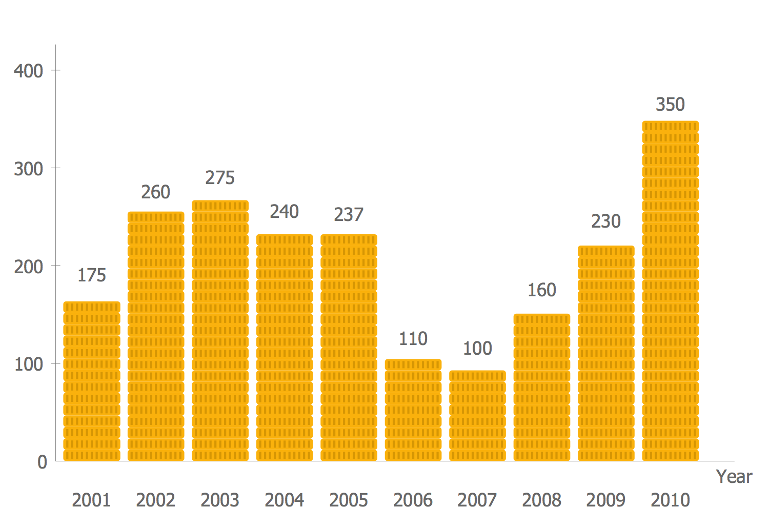 This sample is a perfect example of Marketing Image Chart, which reflects the total financing of Philippines at the period from 2001 to 2010. The group of Image Charts can be allocated among various types of diagrams. Usually these are attractive and bright charts reflecting the data and information in a visual way, and replete by colorful objects and images. The Philippines' economy is one of the largest and actively emerging markets in a world; according to the common rating of International Monetary Fund in 2012, it was on the 40th place. It is a newly industrialized country, which relatively recently passed from the simple agriculture to the agriculture based on the services and manufacturing. According to this graph, the values differ from the year to year, the minimum is observed in 2007 and maximum in 2010. You can use the ConceptDraw DIAGRAM software to design the similar diagrams for any other country in minutes.